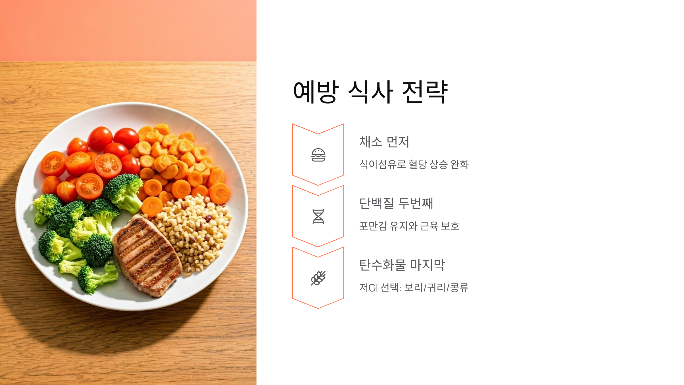 식후 걷기 10분, 채소 먼저 먹기, 물 충분히 마시기. 이 3가지만 실천해도 큰 차이가 납니다.