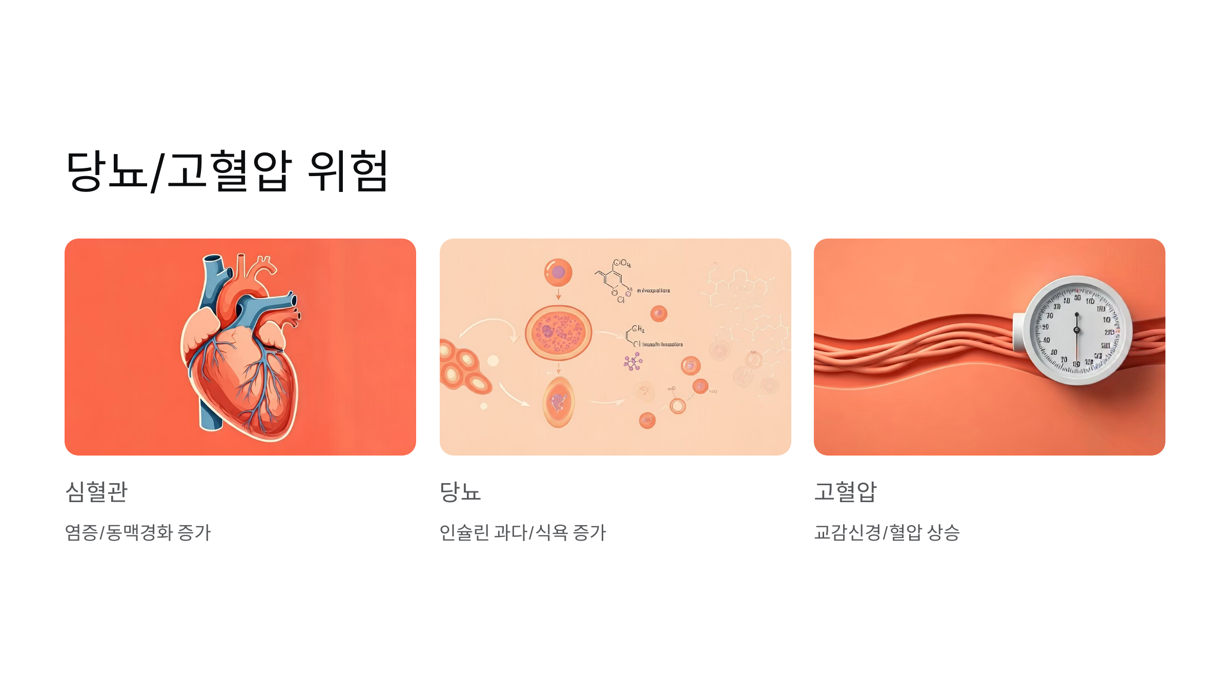 | 심혈관계 | 혈관 내 염증 증가, 동맥경화 위험 상승 |