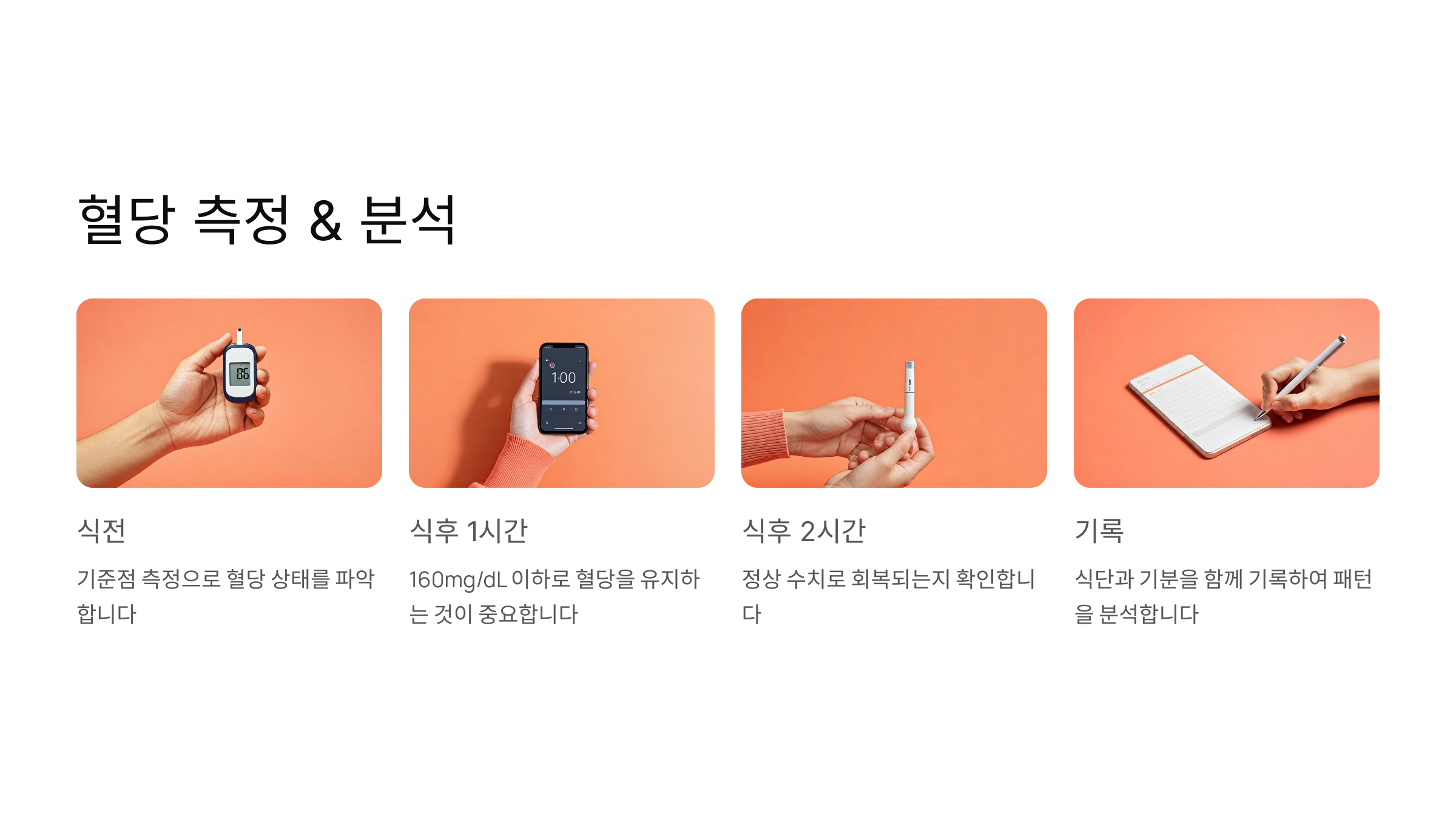 식후 1시간과 2시간 수치를 함께 확인하면, 스파이크 여부와 회복 속도를 동시에 파악할 수 있습니다.
