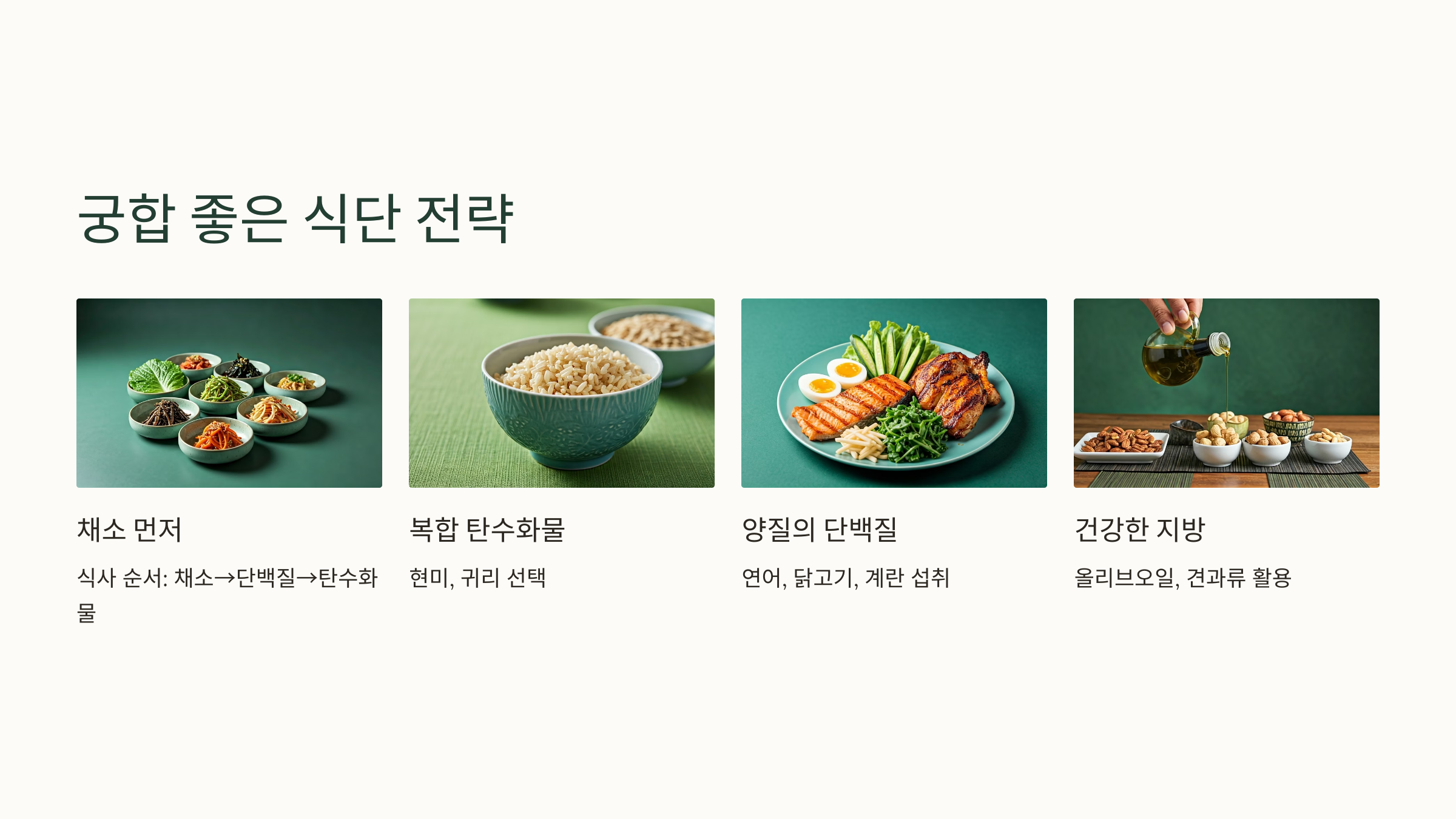 이런 식단을 기본으로 두고, 식후 10~20분 정도의 걷기를 병행하면 혈당 곡선을 매우 안정적으로 만들 수 있습니다.