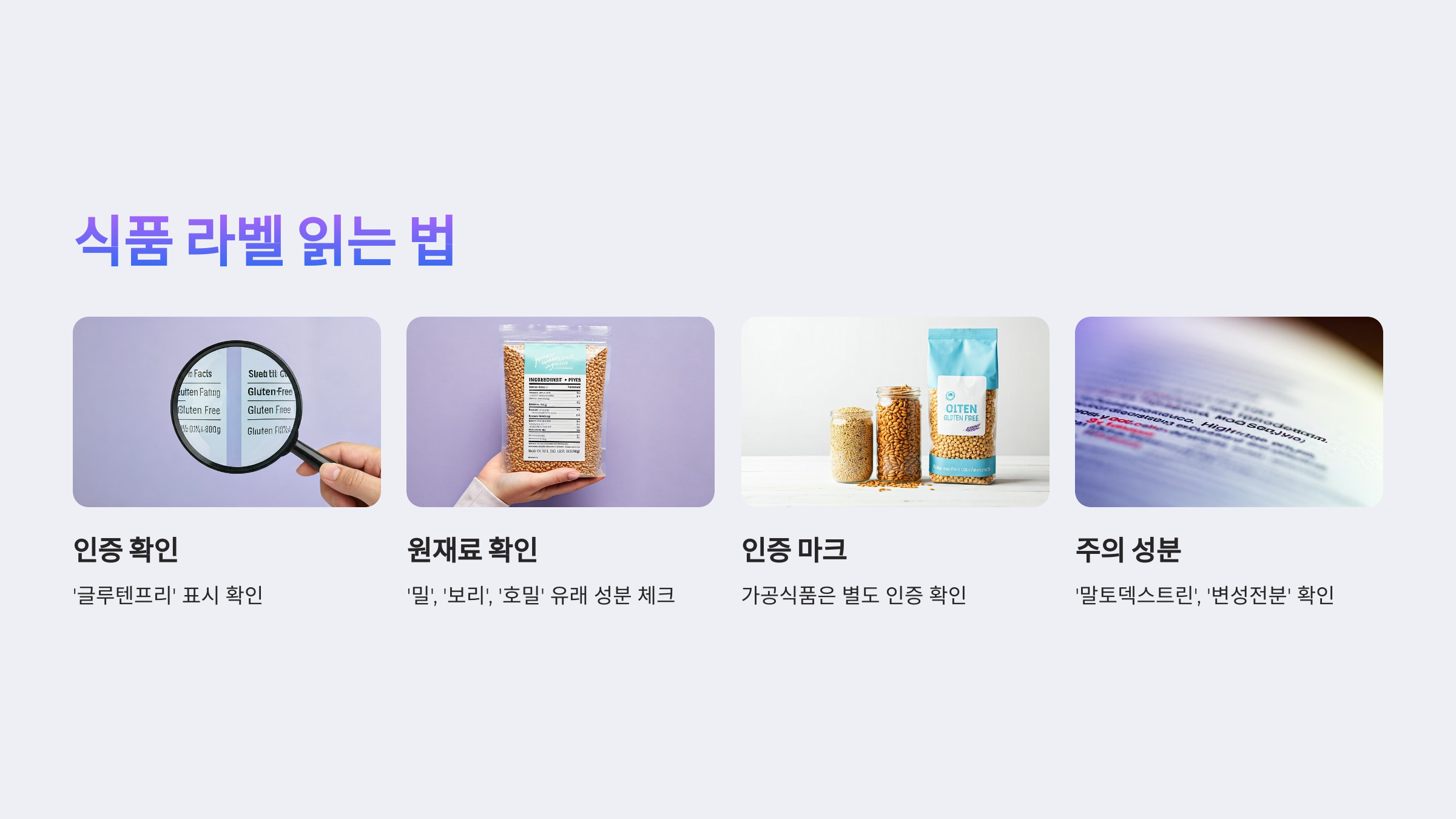 - ‘글루텐프리’ 또는 ‘Gluten-Free’ 표시 확인