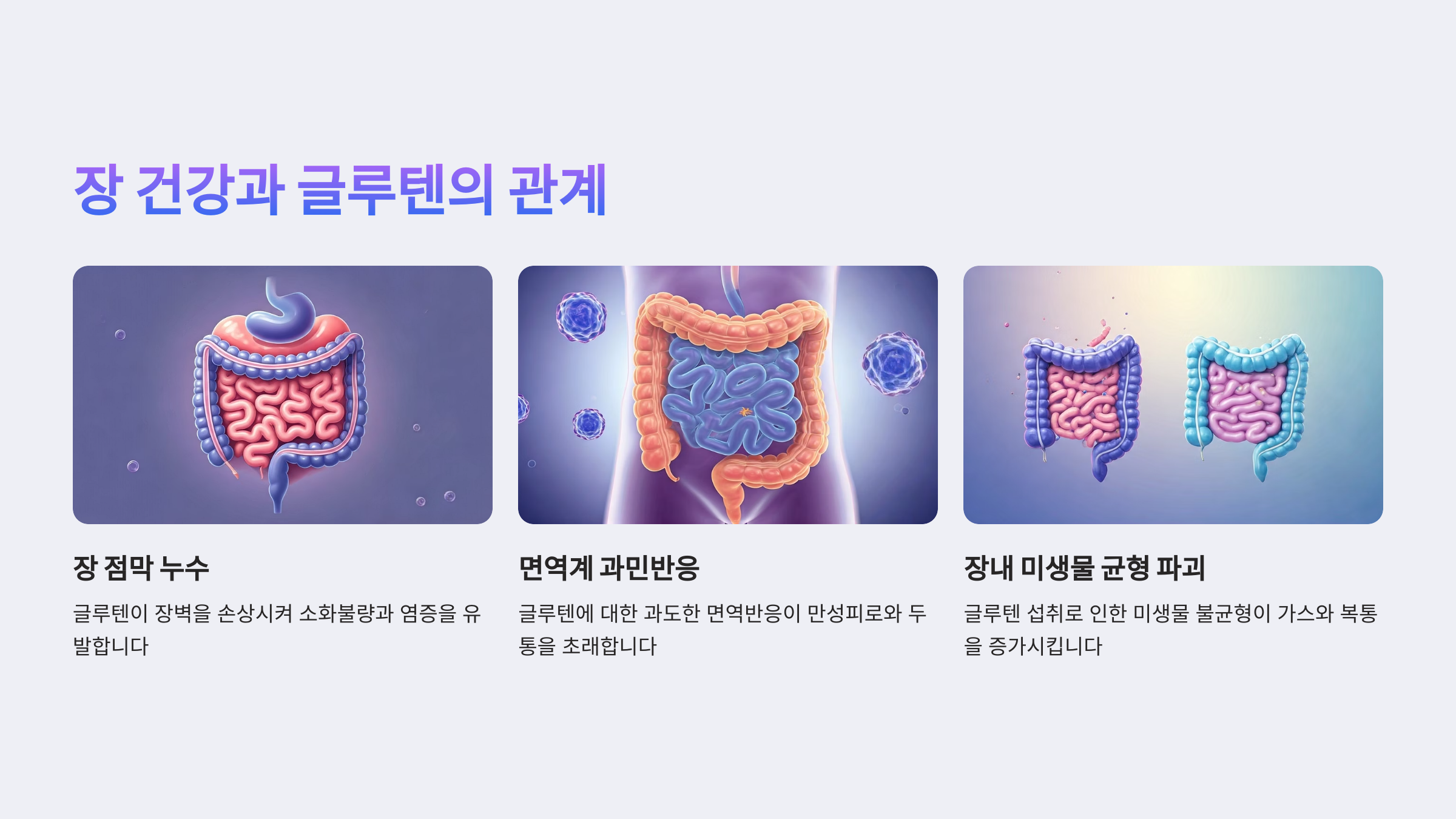 | 장 점막 | 누수(leaky gut) 유발 가능 | 소화불량, 염증 유발 |