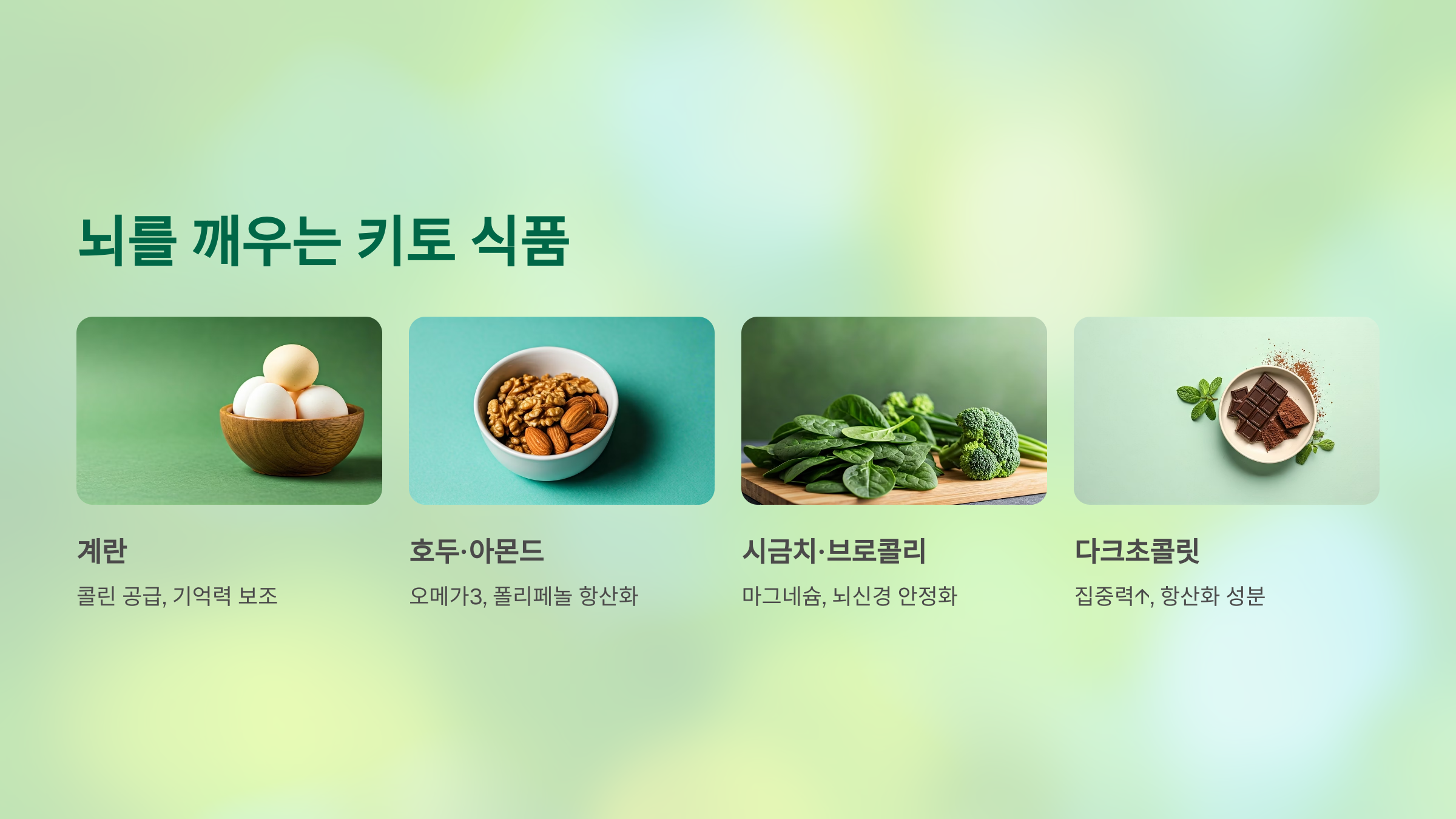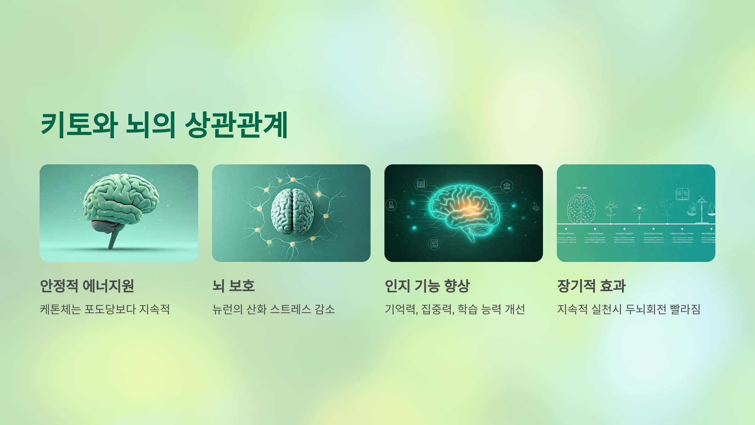 키토제닉 다이어트는 단순히 체중 감량을 넘어서 뇌를 맑게 하고 집중력을 높이는 데 탁월한 전략이 될 수 있습니다. 지속적인 케톤 생성과 항산화 식단을 병행하면 업무 효율도, 정신적 에너지 수준도 눈에 띄게 달라질 거예요. 오늘부터 한 끼, 한 스푼씩 저탄고지 기반의 뇌친화 식단을 실천해보세요. 지치던 두뇌에 진짜 연료가 공급되는 경험을 하게 될 겁니다.