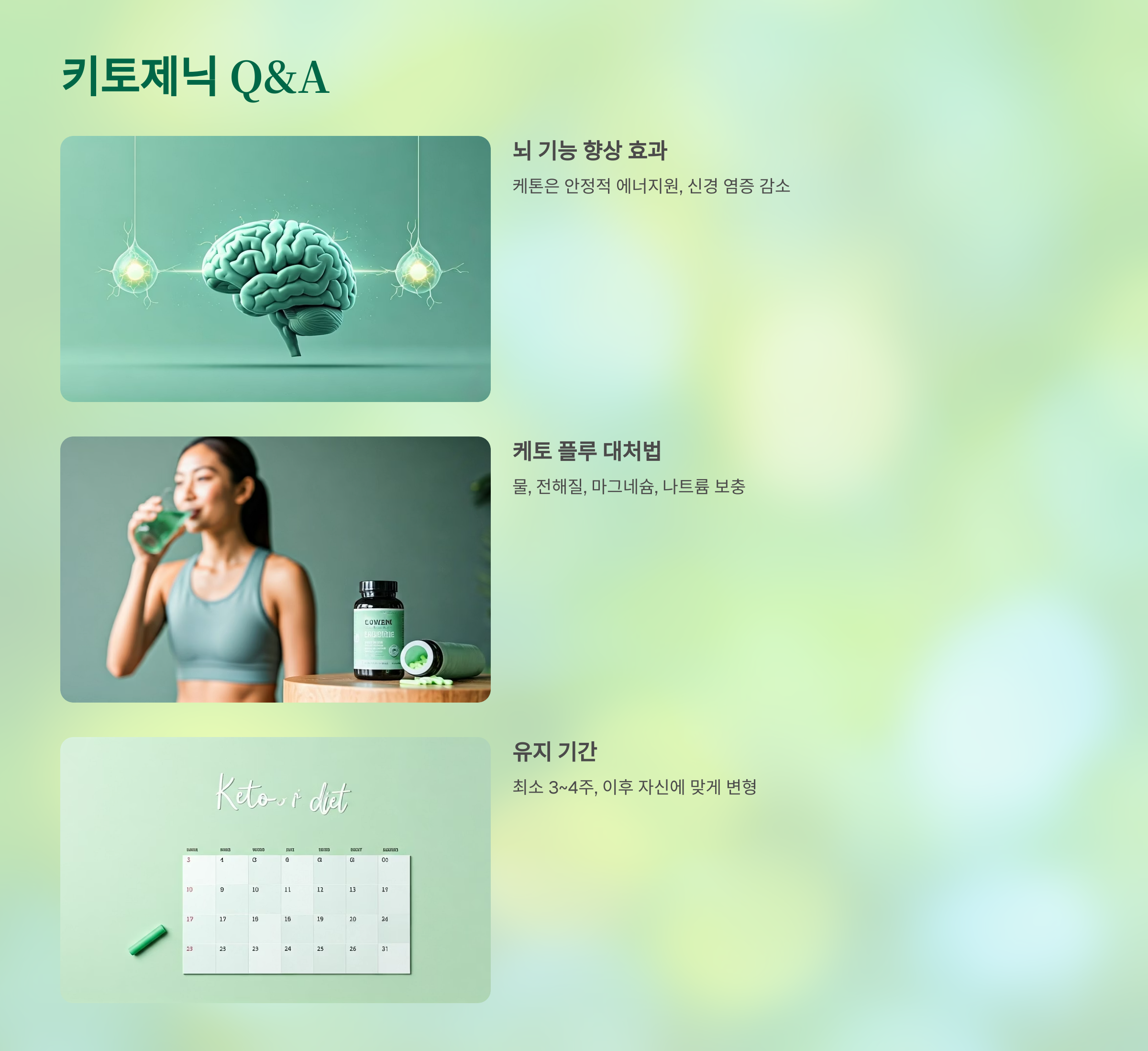 하루 중 집중력을 높이고 싶은 시간대를 기준으로 케톤 유입 타이밍을 조절해보세요. 식단 하나로도 뇌의 컨디션은 확 달라질 수 있습니다.