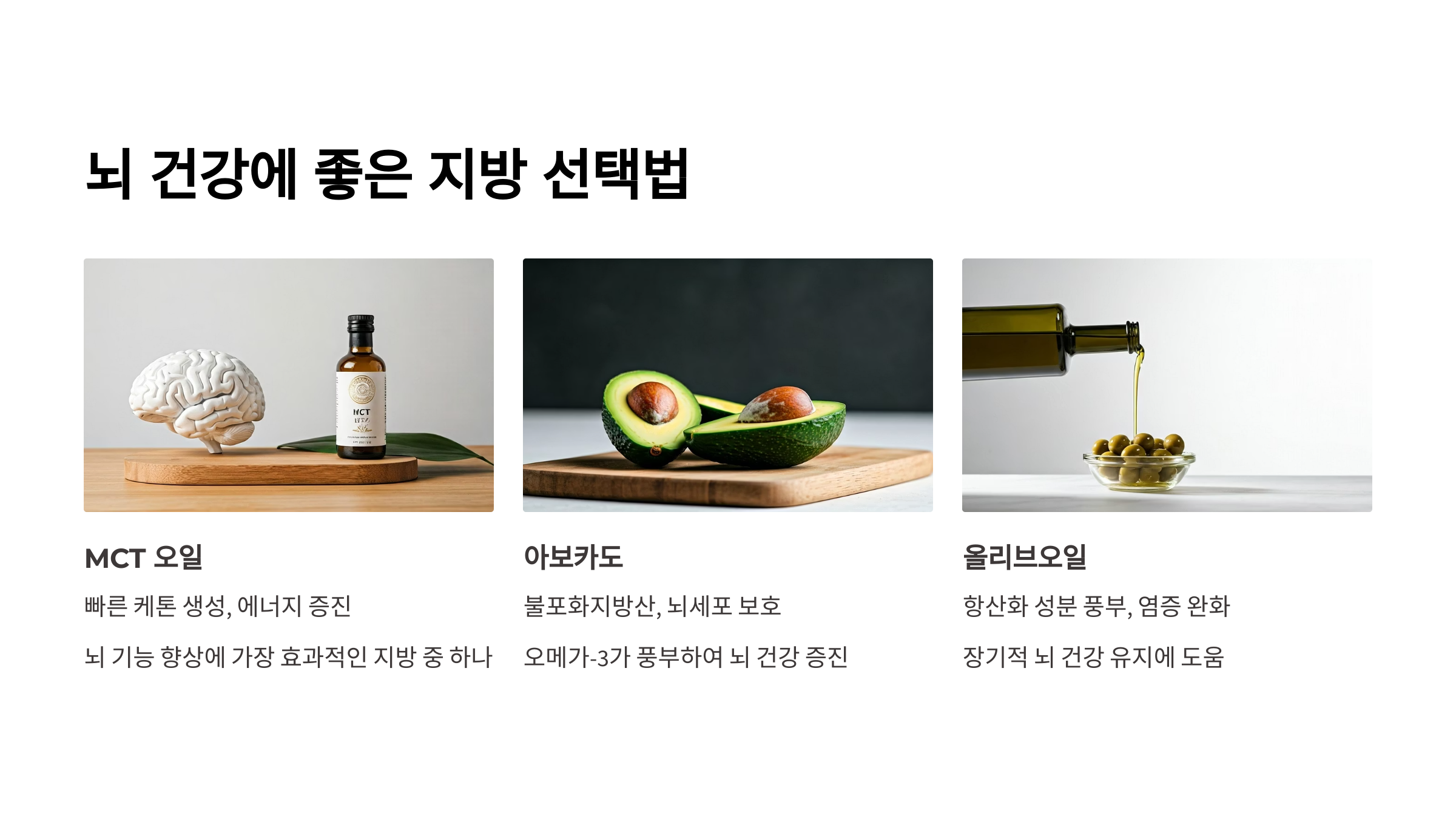 | MCT 오일 | 빠른 케톤 생성, 에너지 증진 |
