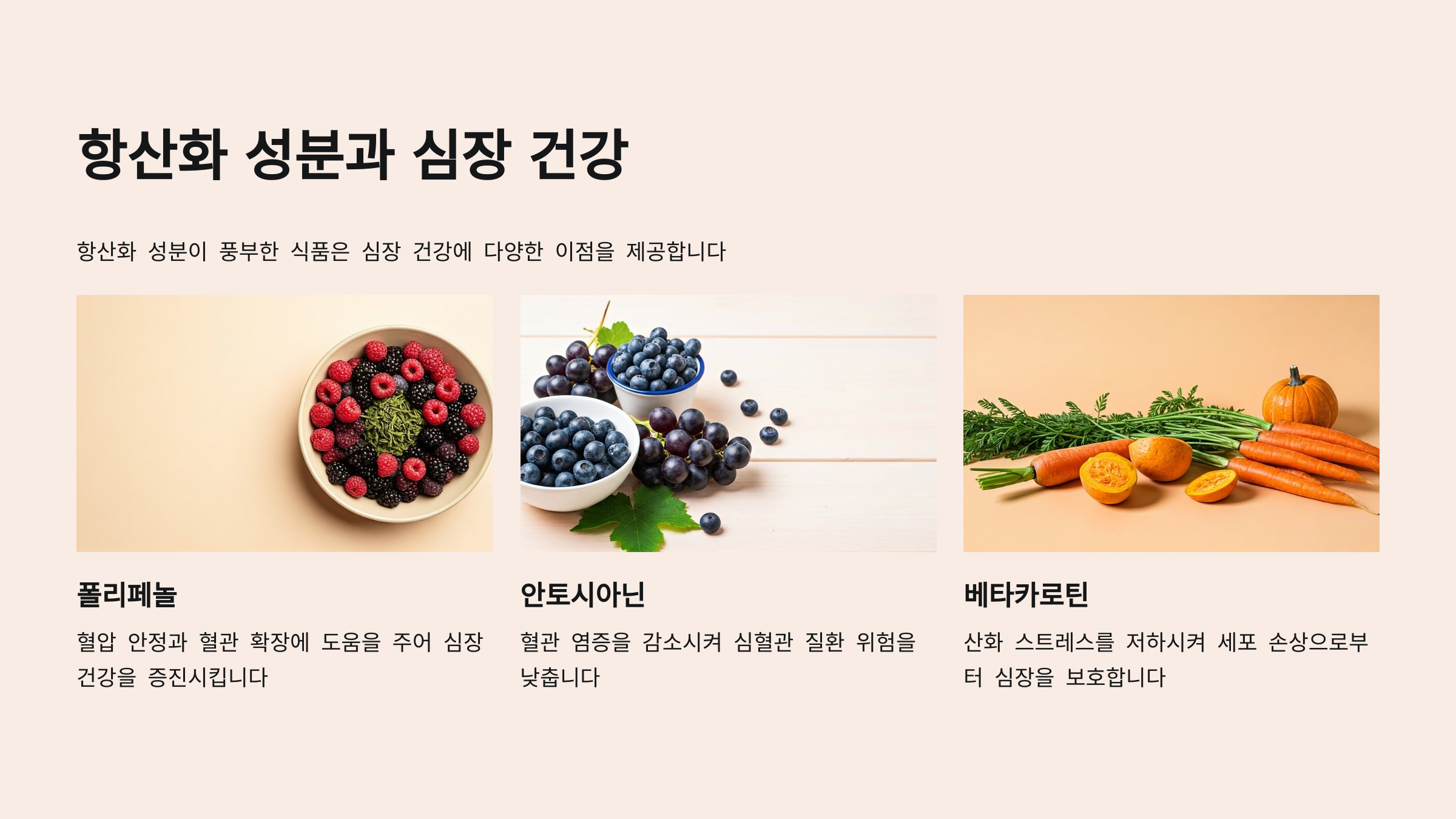 항산화 성분은 체내 활성산소를 제거해 염증을 줄이고 세포 손상을 방지해요. 심장은 혈관을 통해 산소를 공급받는 기관이라, 혈관 건강이 곧 심장 건강이기도 하죠. 따라서 항산화 식품은 심장병, 고혈압, 당뇨 예방에도 중요한 역할을 해요.