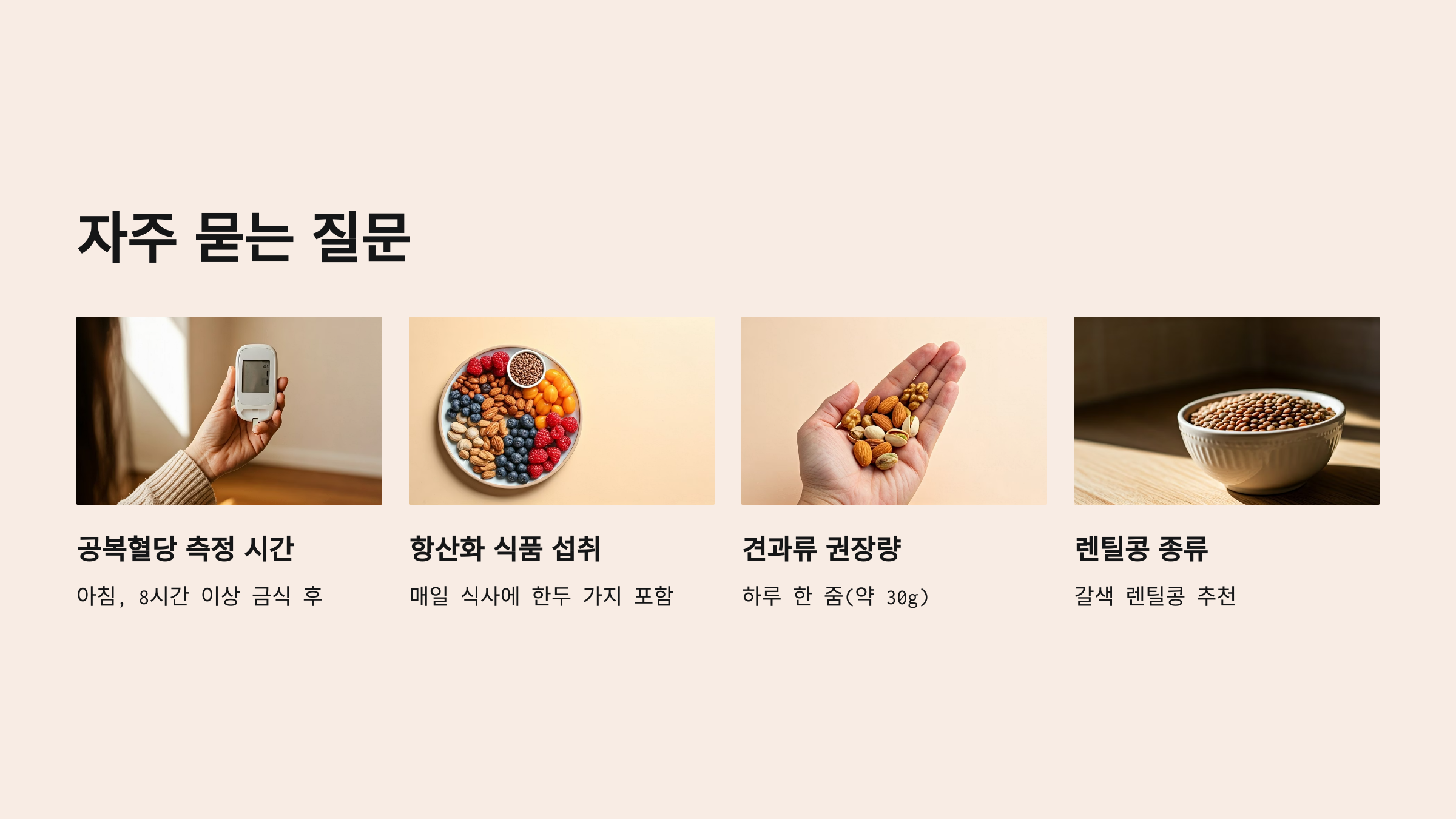 어떠셨나요? 오늘 소개한 항산화 레시피 다섯 가지는 혈당 조절뿐 아니라 심장 건강까지 한 번에 챙길 수 있는 최고의 식단입니다. 하루 한 끼만 바꿔도 내 몸이 달라진다는 걸 느끼게 되실 거예요. 여러분도 부담 없이 하나씩 시도해보세요. 그리고 결과가 어땠는지 꼭 댓글로 나눠주세요. 우리, 건강한 식탁으로 함께 변화해봐요!