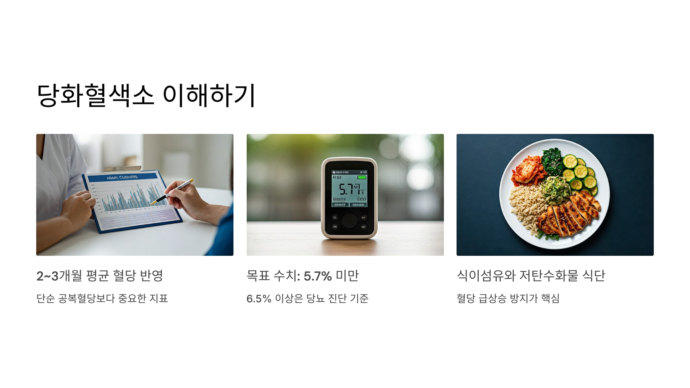 당화혈색소(HbA1c)는 최근 2~3개월간 평균 혈당을 반영하는 지표로, 단순 공복혈당보다 더 중요한 데이터예요. 수치가 높다는 건 혈액 속 포도당이 지속적으로 많았다는 뜻이죠. 목표 수치는 보통 5.7% 미만이며, 6.5% 이상이면 당뇨 진단 기준이 됩니다. 이 수치를 낮추려면 식단과 운동은 기본, 특히 혈당의 급격한 상승을 막는 식이섬유와 저탄수화물 식단이 핵심이에요.