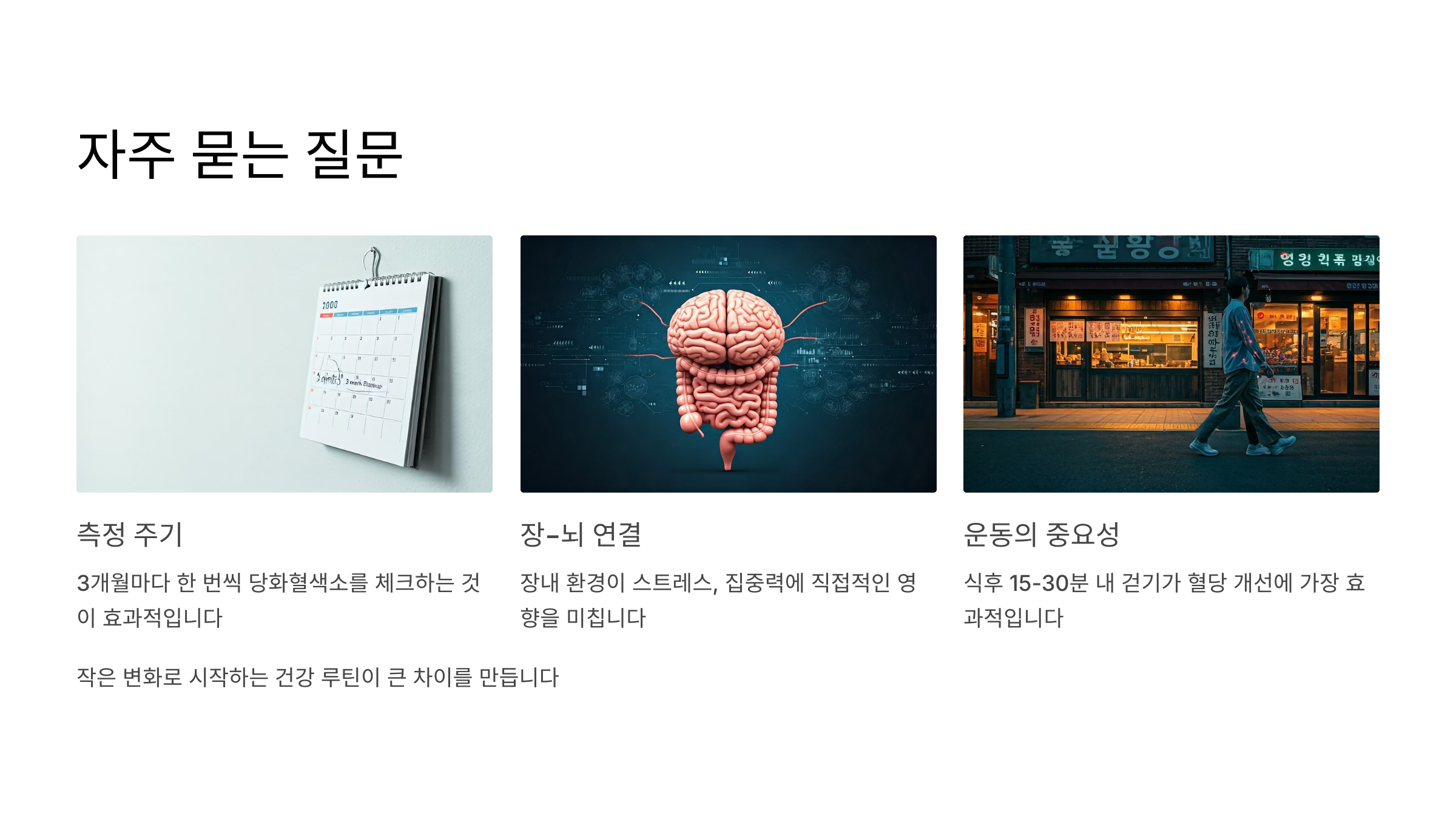 지금까지의 내용을 따라오셨다면, 여러분은 이미 당화혈색소 개선을 위한 첫걸음을 내디디신 거예요. 식단 하나 바꾸는 것만으로도 몸은 놀라울 만큼 반응합니다. 저도 그렇게 변화의 시작을 경험했거든요. 오늘 소개해드린 요리와 팁들로 장, 뇌, 혈당까지 챙기는 ‘진짜 건강 루틴’을 만들어 보세요. 댓글로 여러분의 변화나 궁금한 점 나눠주시면 함께 더 건강한 방향을 찾아가 보아요. 우리 같이 해요, 꾸준히!