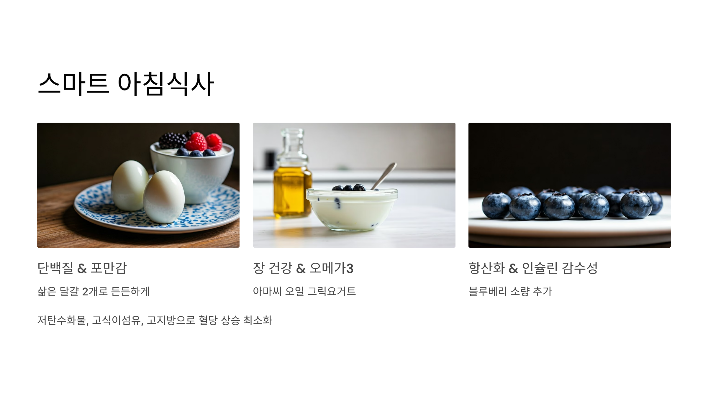 현대인의 바쁜 일상 속에서도 빠르고 간편하게 챙길 수 있는 ‘스마트 브렉퍼스트’가 2025년 건강 트렌드예요. 저탄수화물, 고식이섬유, 고지방 식단으로 포만감은 오래가고, 혈당 상승은 최소화됩니다.