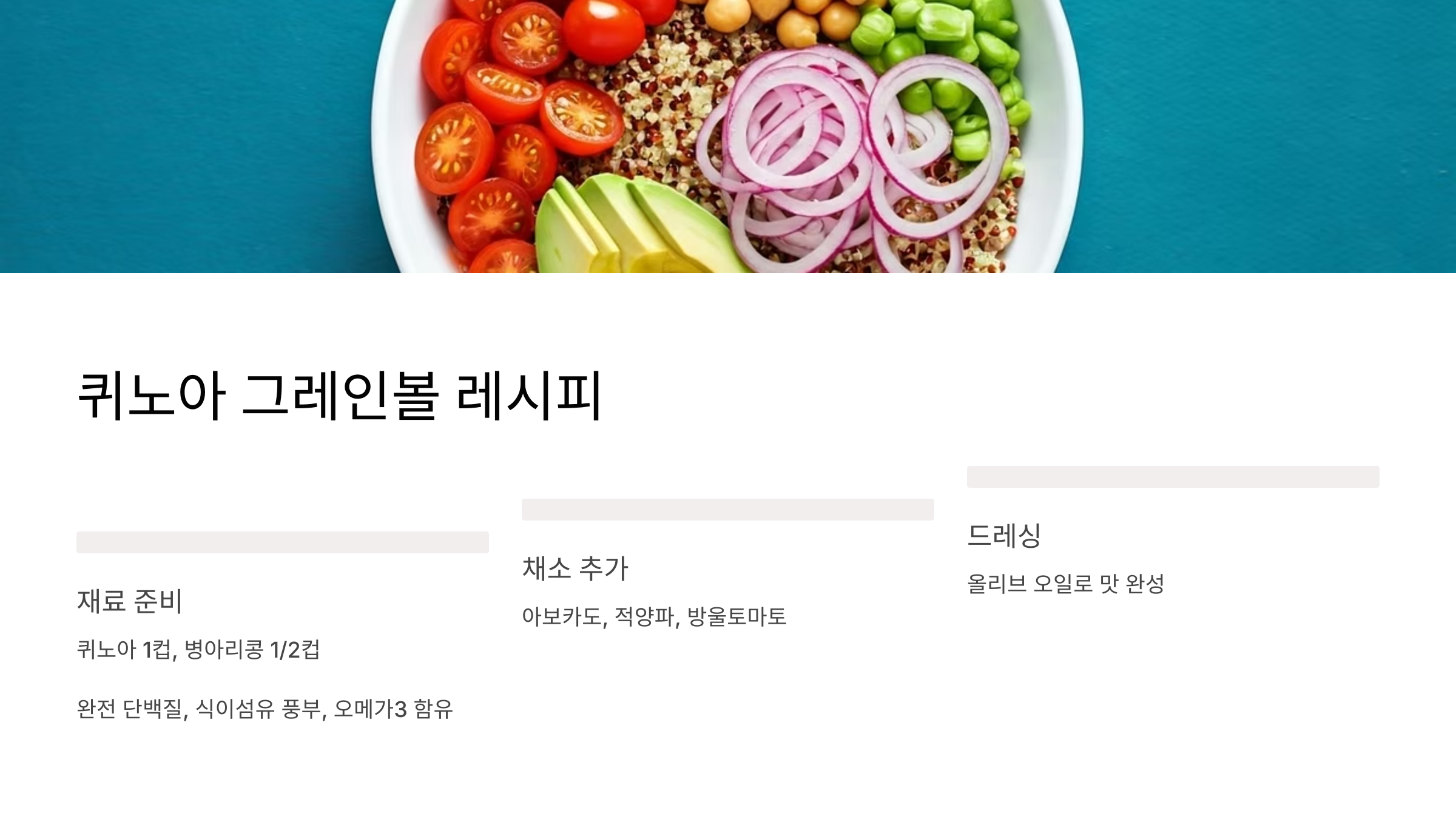 - 삶은 퀴노아 1컵 + 병아리콩 1/2컵