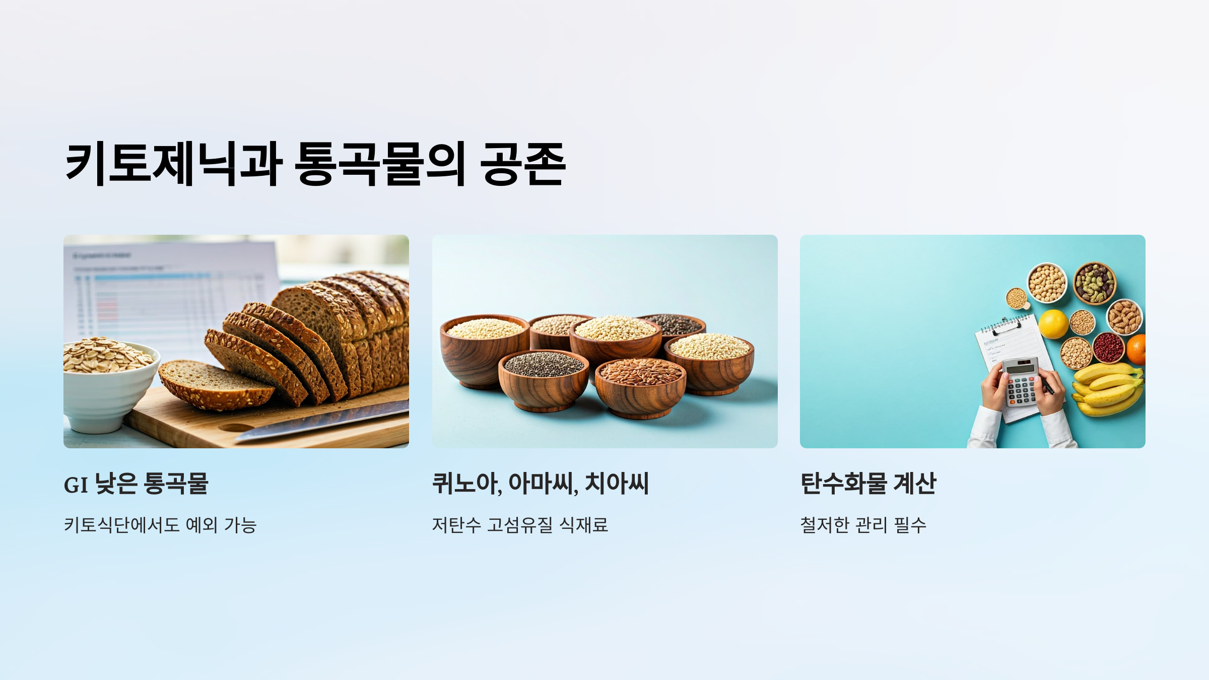이제 통곡물, 키토제닉, 글루텐프리라는 세 가지 식단 키워드가 어떻게 하나의 건강한 식탁으로 연결되는지 아셨죠? 저도 처음엔 어려웠지만, 지금은 이 조합이 가장 속도 편하고 에너지가 유지되는 방법이라는 걸 확신하고 있어요. 빵을 포기하지 않으면서도 건강한 삶을 지켜나가는 방법, 오늘부터 도전해보세요. 여러분의 경험도 댓글로 나눠주세요! 함께 건강하고 똑똑한 식단을 만들어가요 :)
