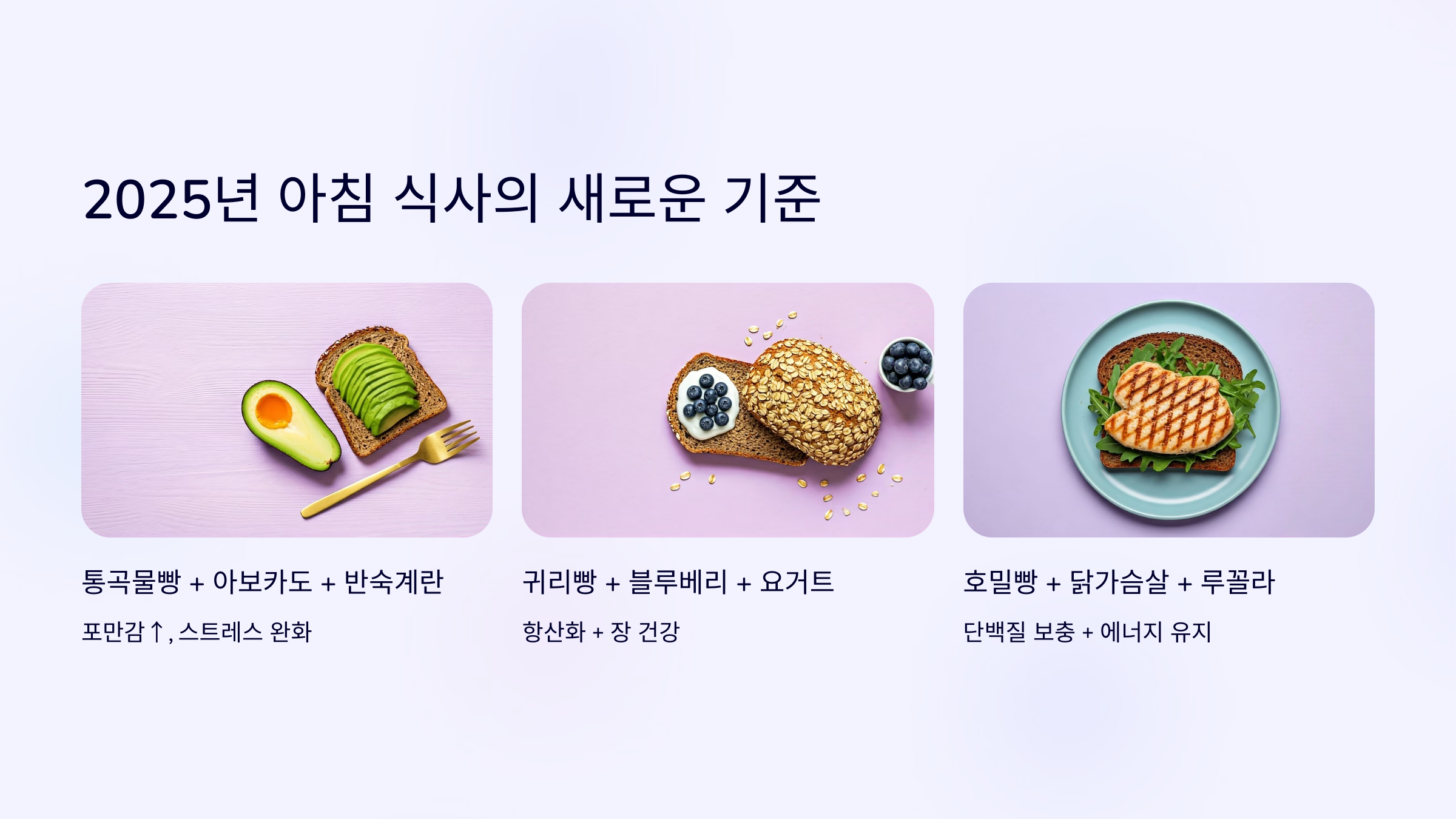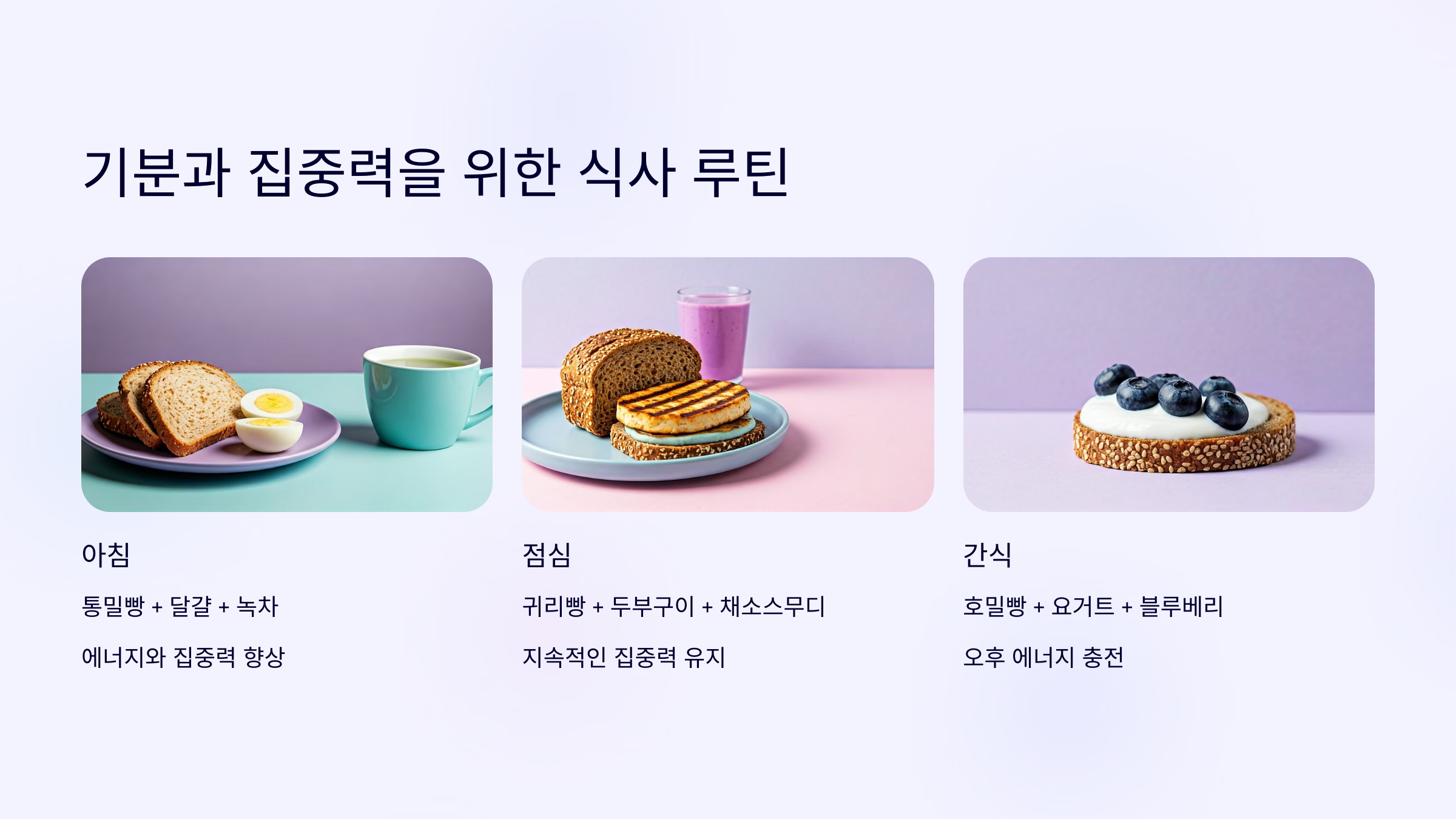 | 귀리빵 + 블루베리 + 요거트 | 항산화 + 장 건강 |