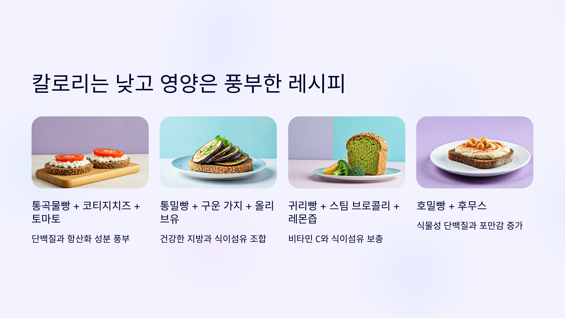 탄수화물은 줄이고 싶지만 빵은 포기 못 한다면? 아래 조합은 칼로리를 낮추면서도 항산화 영양까지 챙기는 방법이에요.