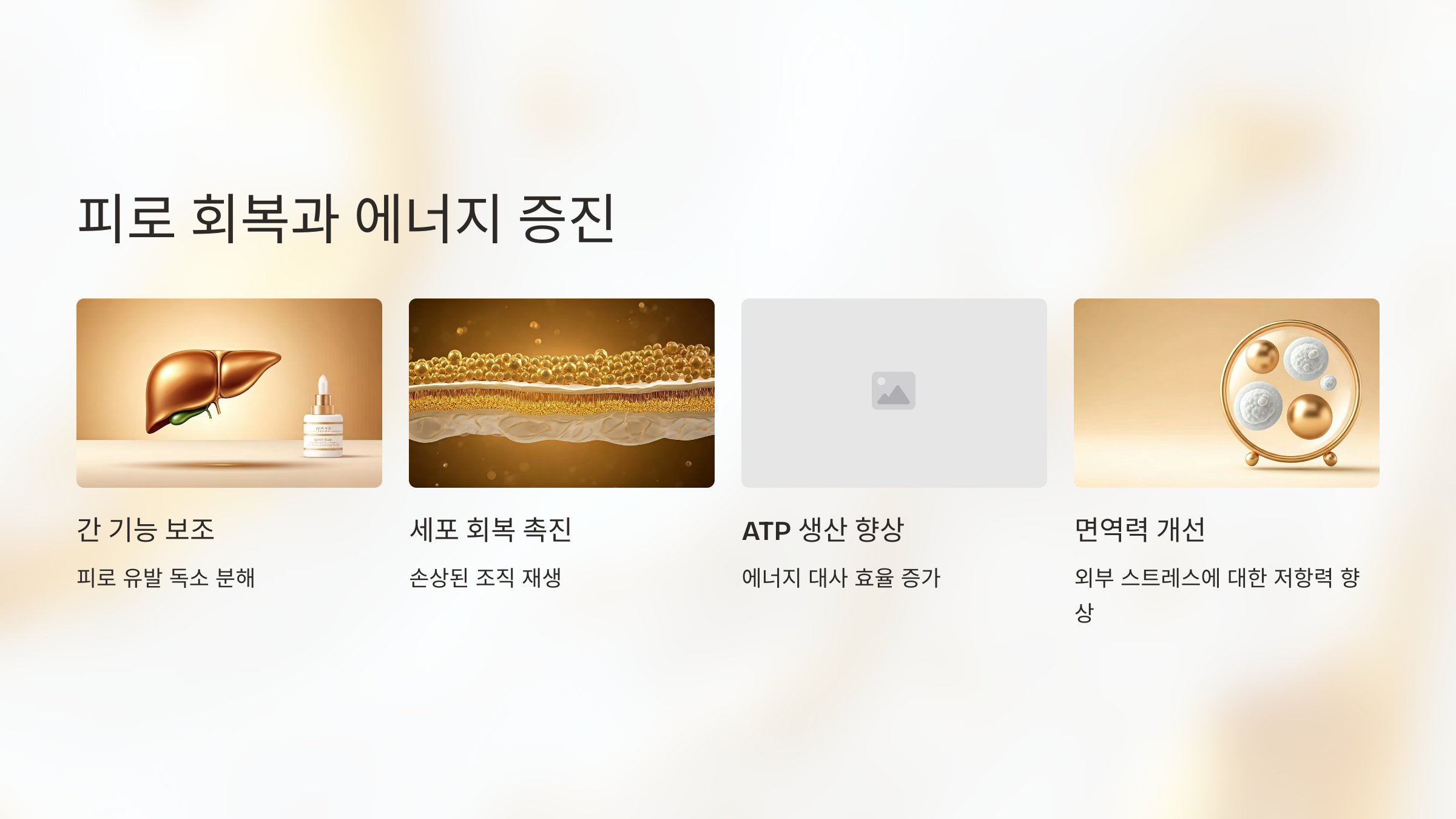 | 기력저하, 우울감 | 에너지 대사 촉진, 신경전달물질 균형 |