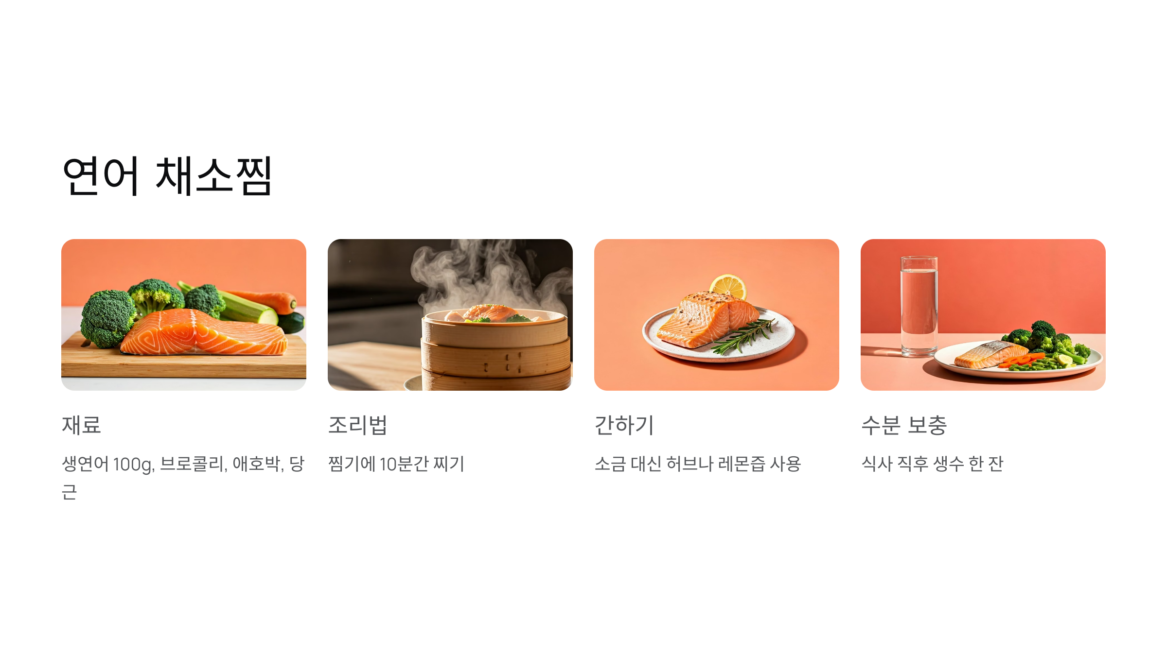 굽거나 찌는 방식이 좋습니다. 튀김이나 자극적인 양념은 피하고 허브, 레몬, 올리브유 등을 활용해 심플하게 조리하세요.