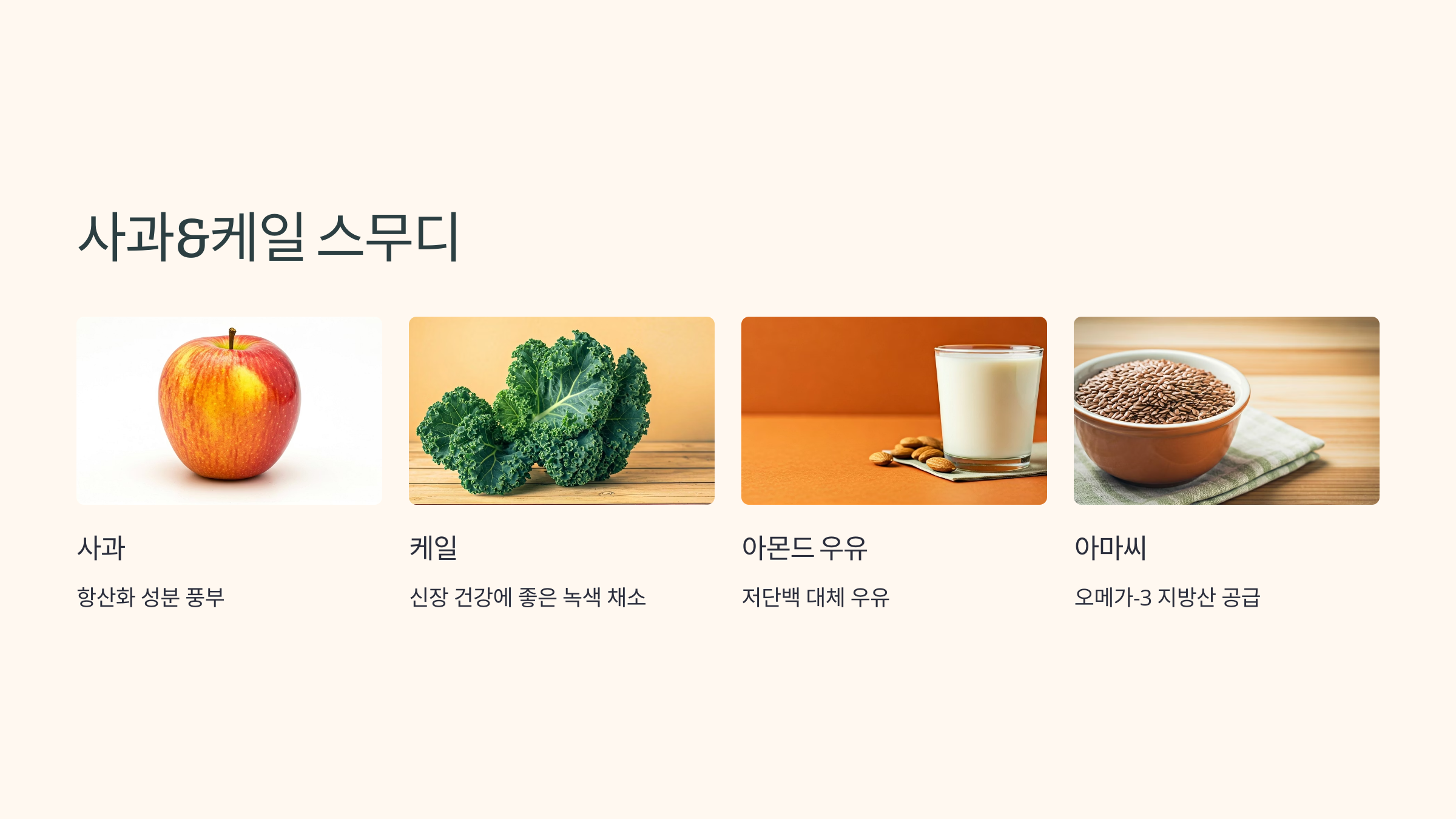 - 사과 1/2개, 케일 잎 2장, 아몬드 우유 150ml