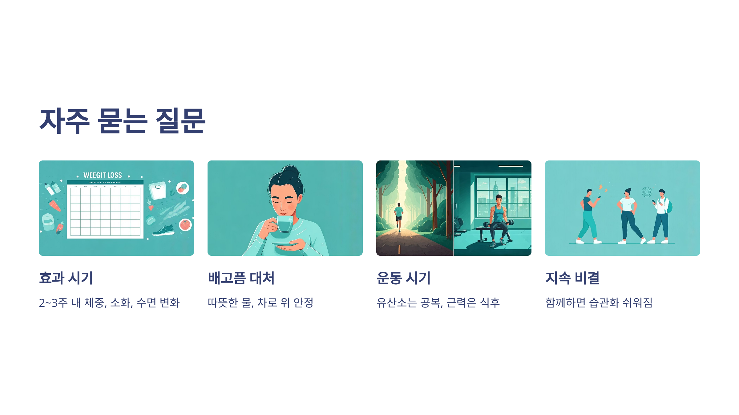 개인차가 있지만 보통 2~3주 내에 체중, 소화, 수면의 긍정적인 변화를 느끼는 경우가 많습니다.