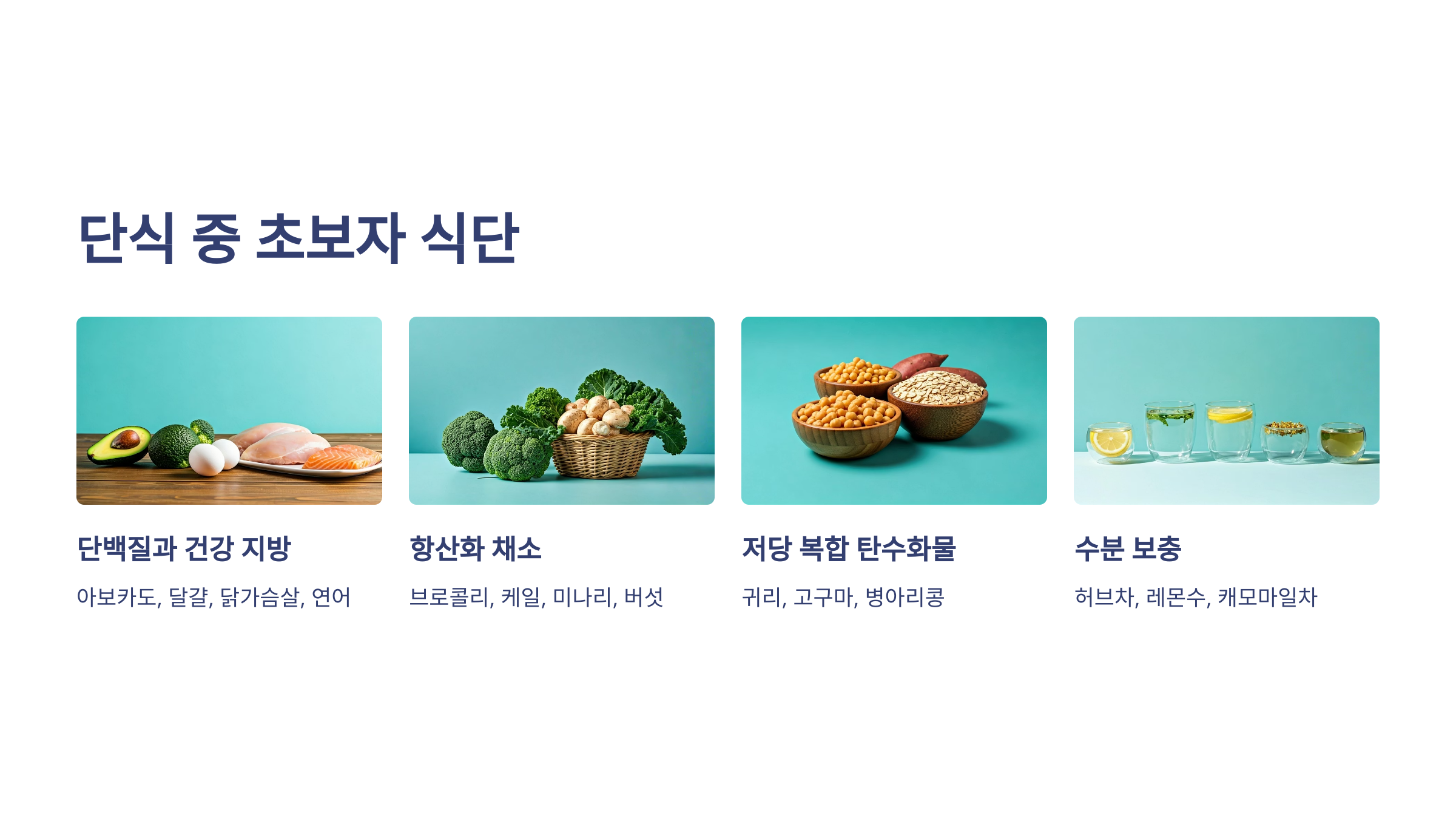 - 귀리, 고구마, 병아리콩 등 저당 복합 탄수화물
