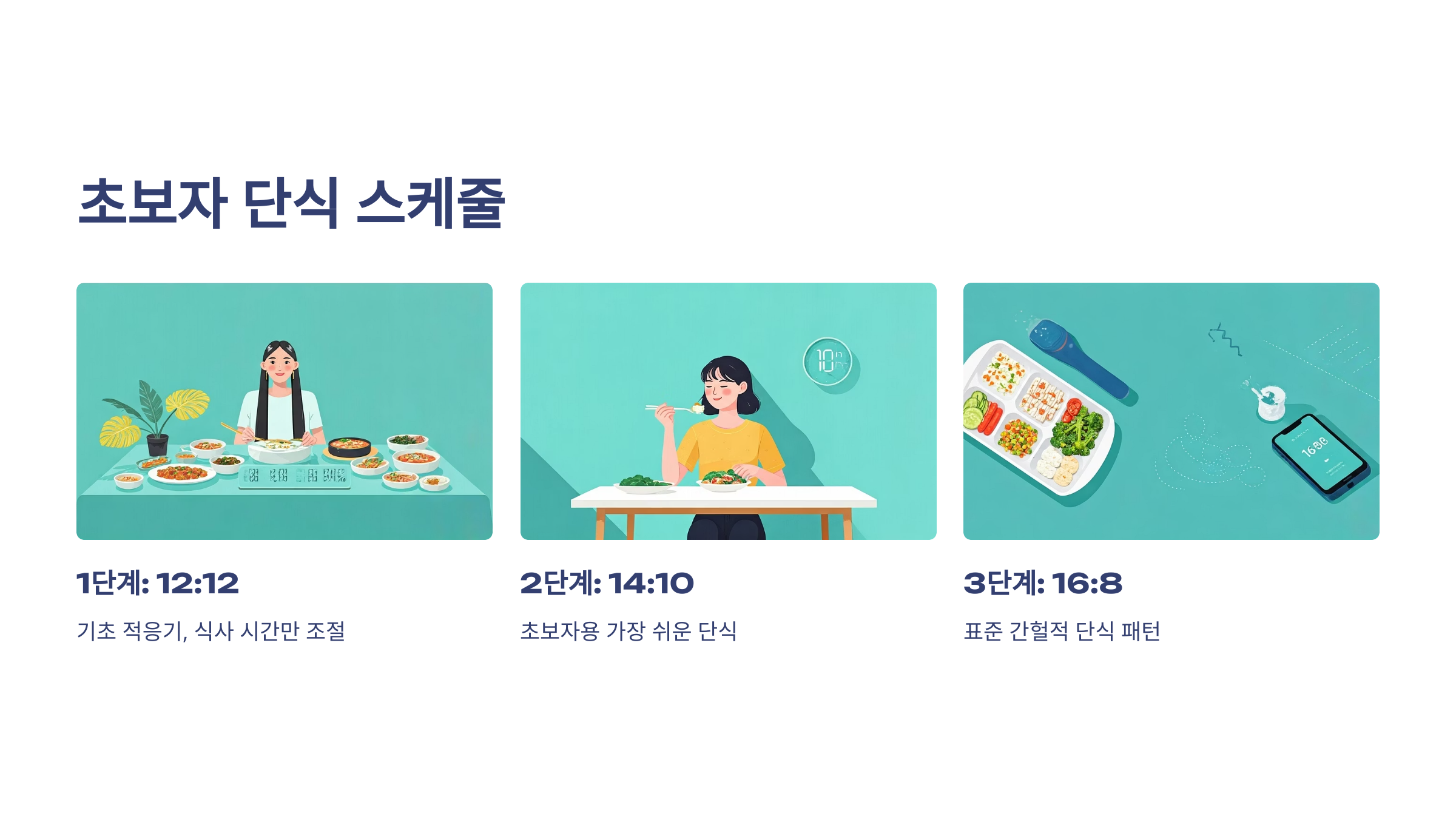 | 3단계 | 16:8 | 표준 간헐적 단식 패턴 |