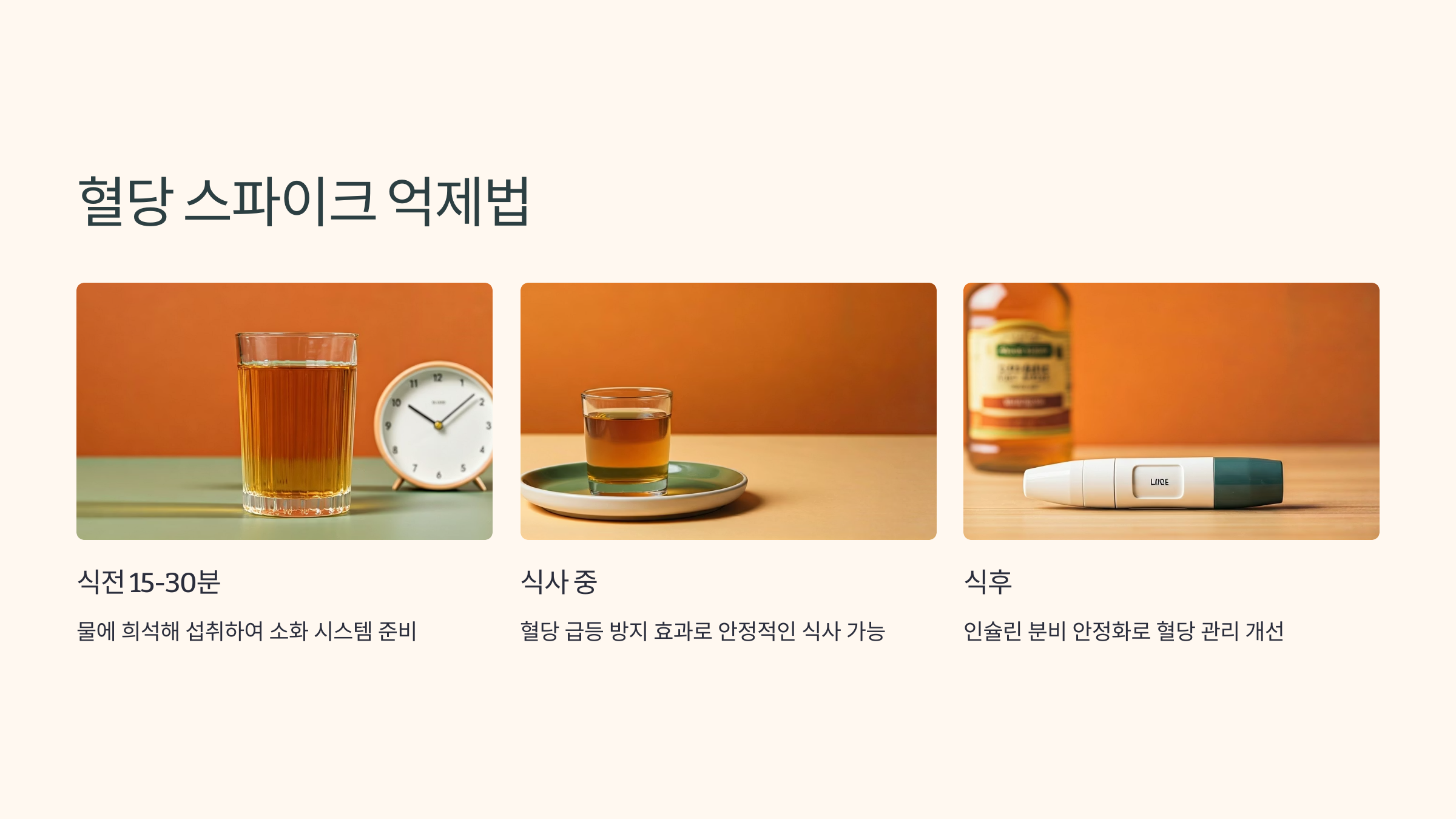 | 식전 | 식사 15~30분 전 섭취 | 혈당 스파이크 억제 |