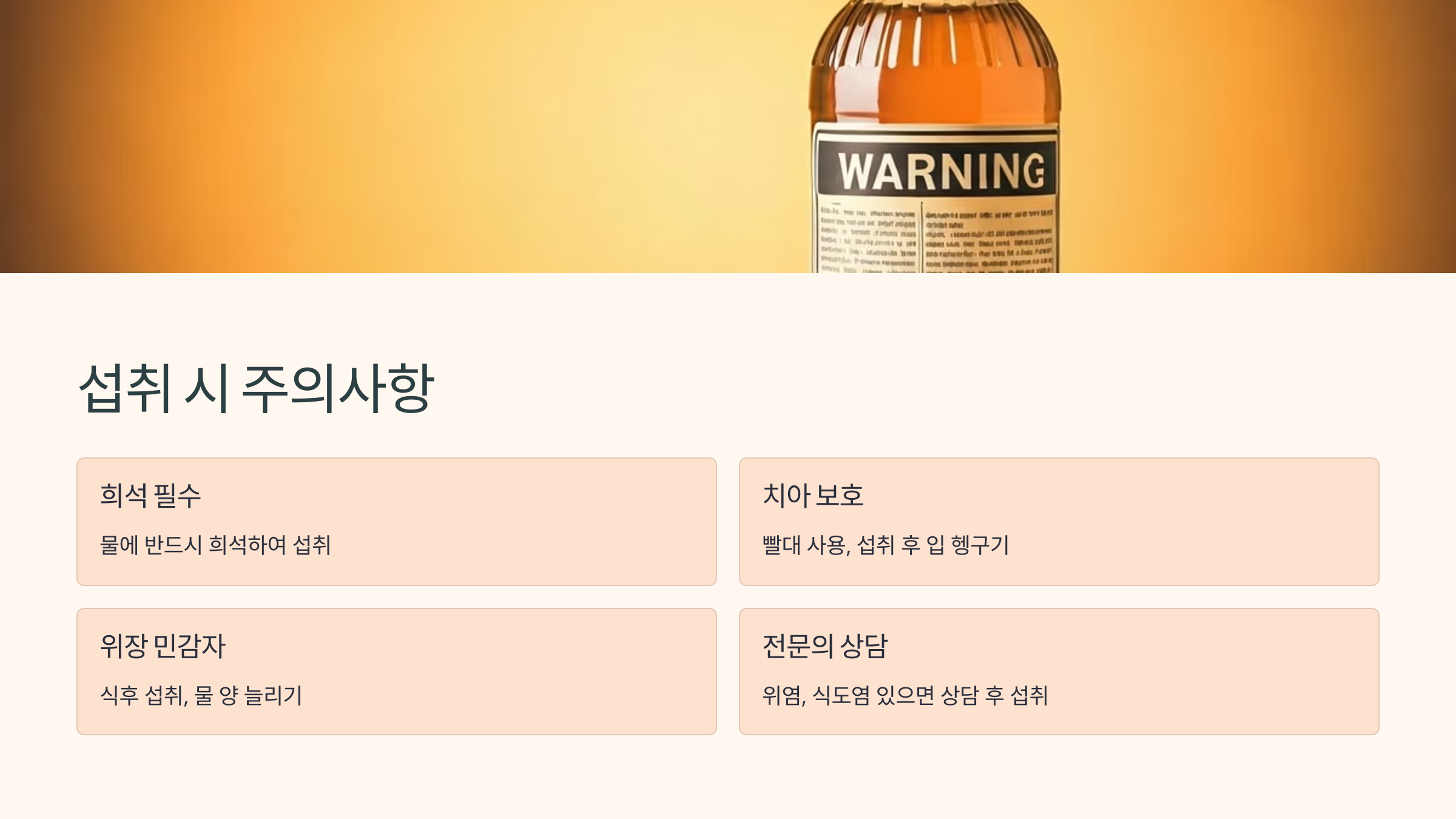 - 단, 위산 과다나 위염 증상 있으면 피하거나 식후 섭취