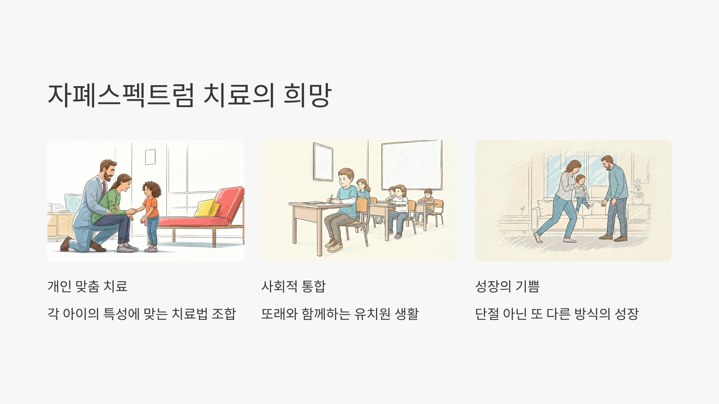 개선 가능성은 매우 높지만, ‘완치’보다는 기능 향상과 자립 능력 향상이 목표입니다. 일부 아동은 진단기준에서 벗어나기도 합니다.