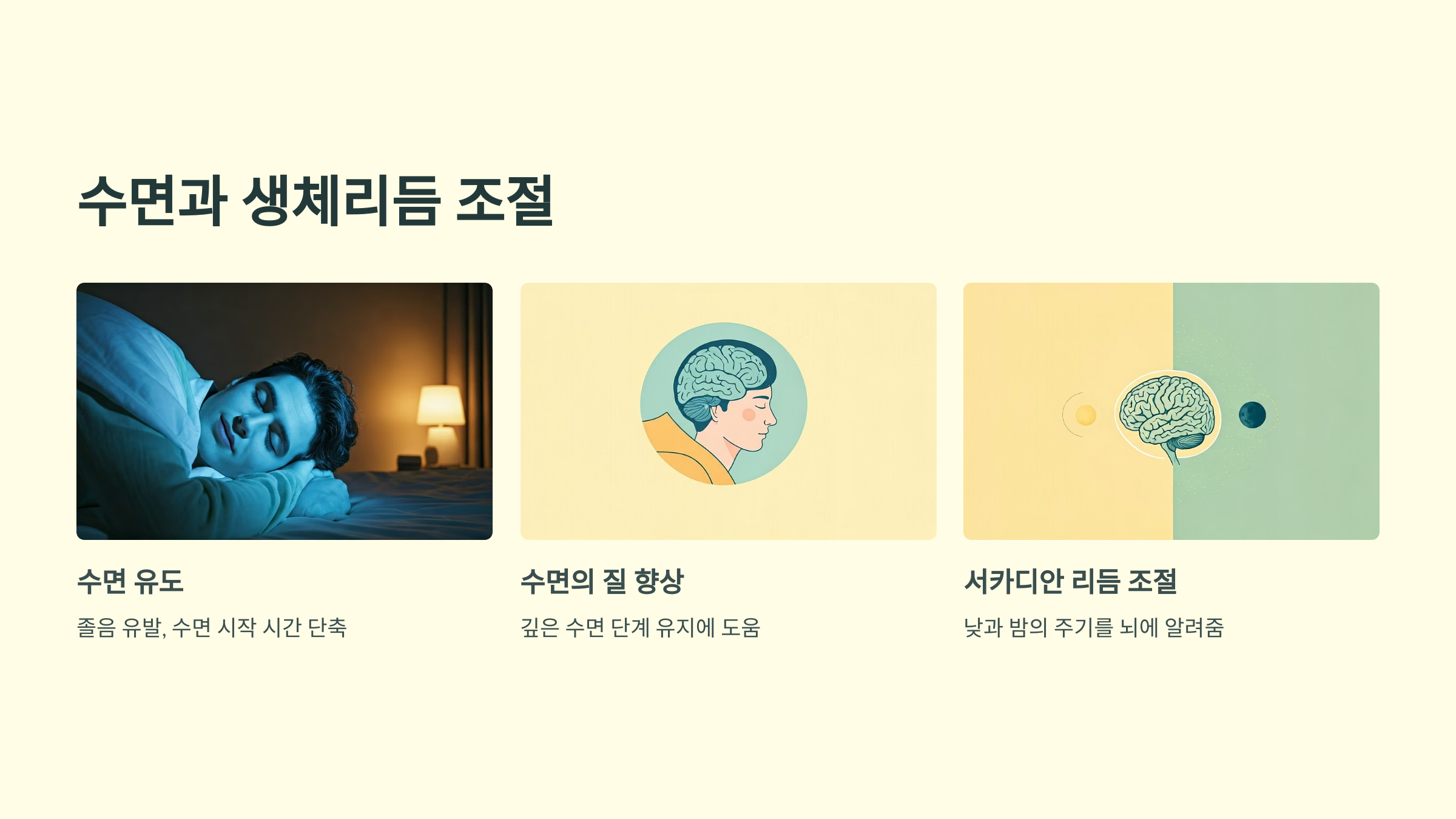 | 수면 유도 | 졸음을 유발하고 수면 시작 시간 단축 |