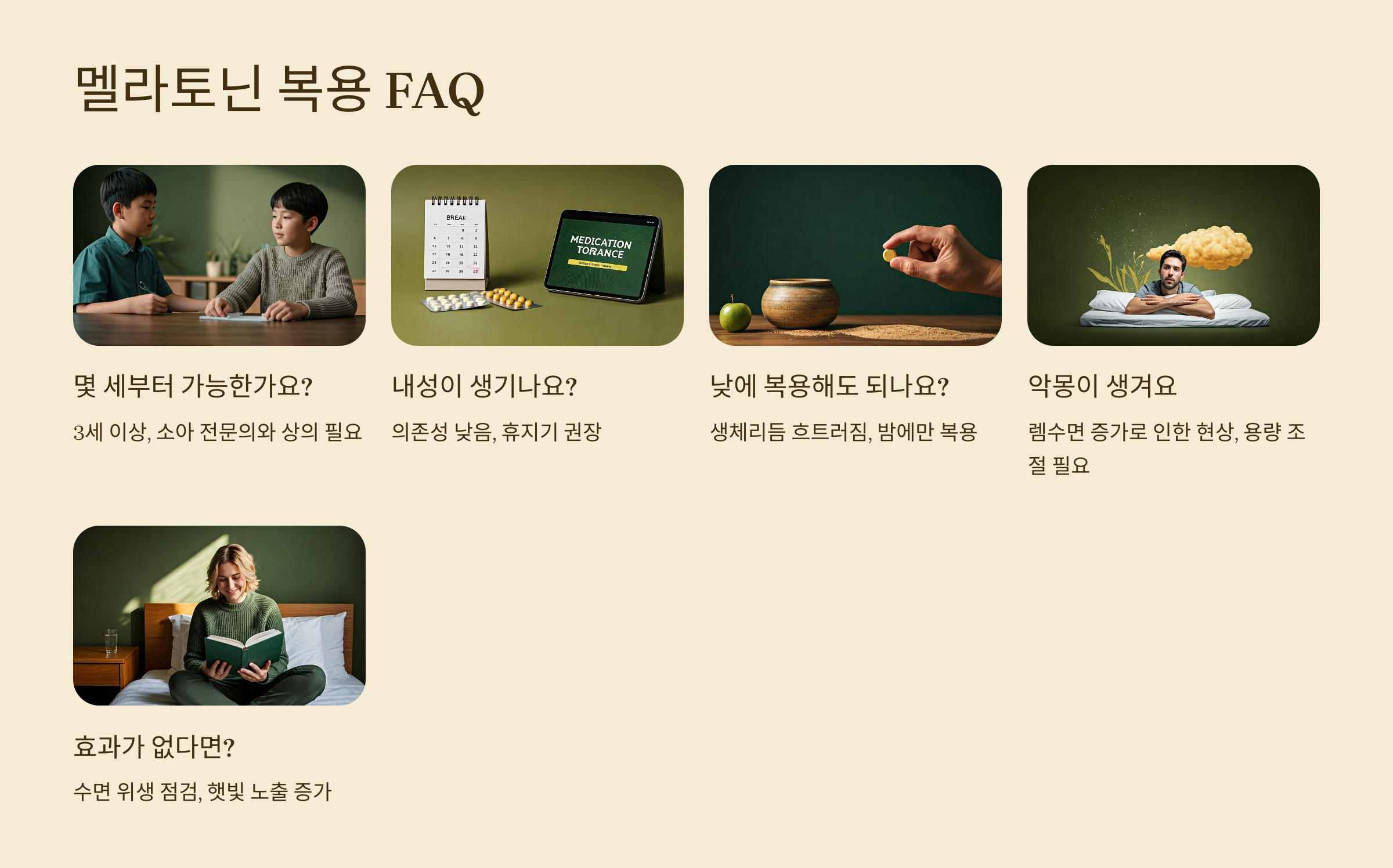 많은 사람들이 멜라토닌에 대해 몇 가지 고정관념을 갖고 있어요. 실제 사실과는 다른 대표적인 오해들을 아래와 같이 정리했습니다.