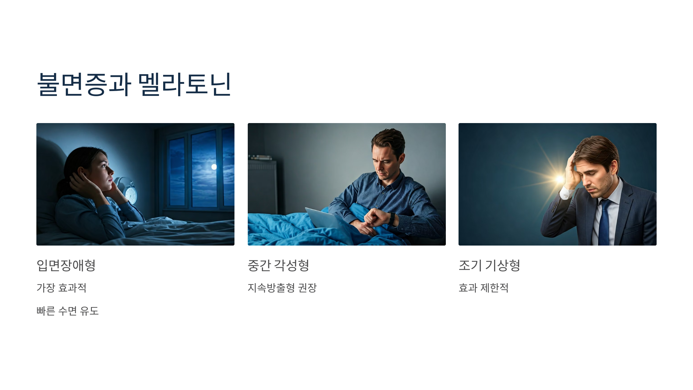 | 중간 각성형 | 지속방출형 멜라토닌 권장 |