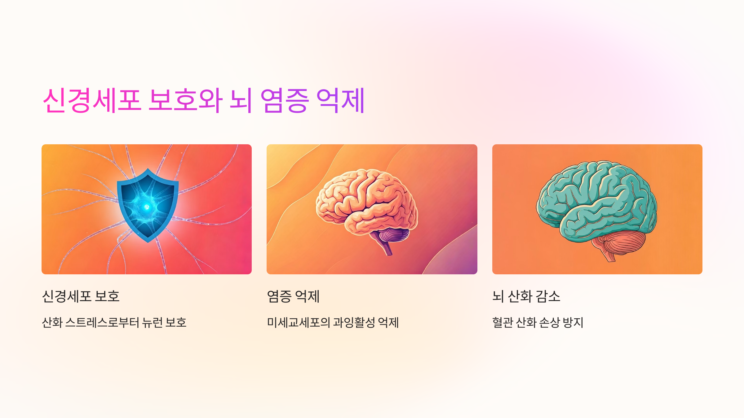 | 신경세포 보호 | 산화 스트레스로부터 뉴런을 보호 |