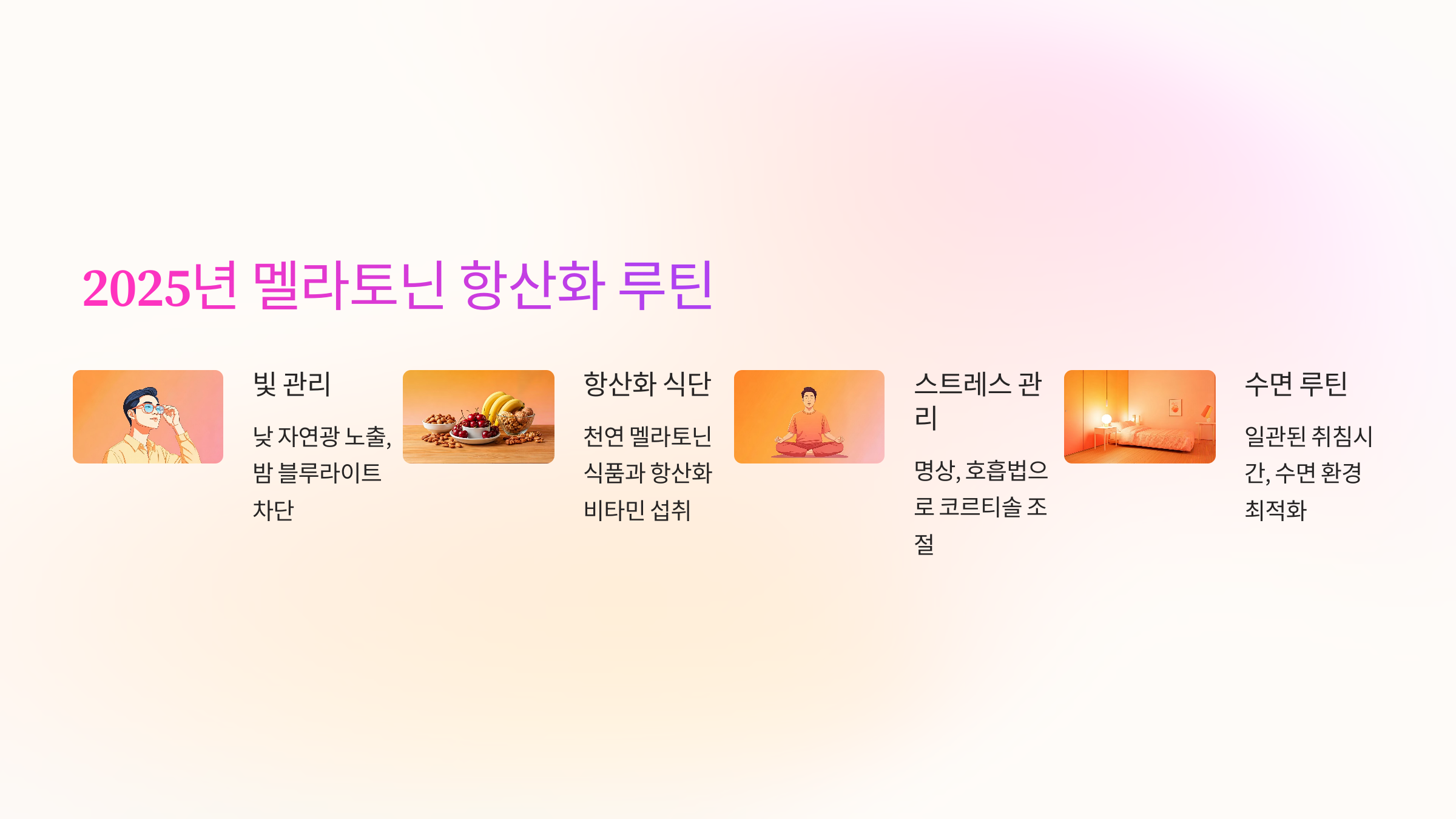예전엔 멜라토닌을 단순히 ‘잠 오는 약’으로만 알았지만, 지금은 제 건강 루틴의 핵심 항산화제가 되었어요. 특히 뇌 피로와 면역력이 떨어졌던 시기에 멜라토닌과 항산화 식단을 함께 했더니 뚜렷한 회복을 느낄 수 있었죠. 중요한 건 단순 복용이 아니라, 수면 루틴과 빛 관리, 항산화 식품과의 조화예요. 오늘부터 당신의 밤을 지키는 멜라토닌 루틴, 시작해보세요. 몸과 마음이 달라질 거예요.