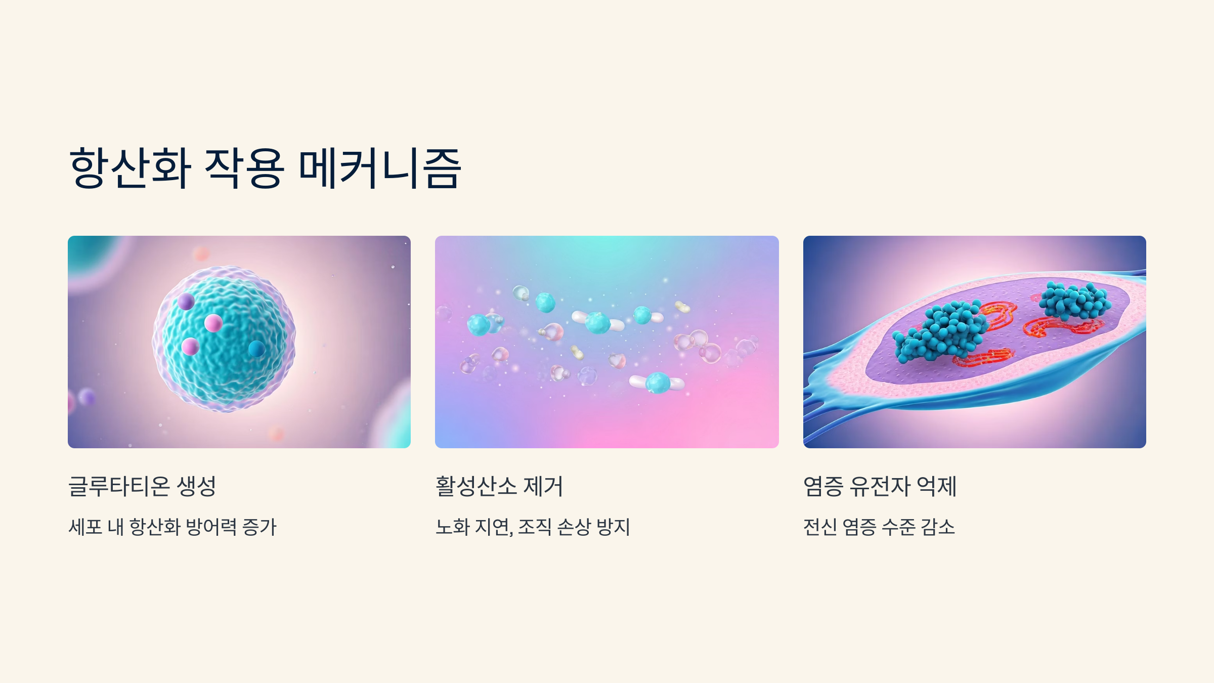 | 글루타티온 생성 | 세포 내 항산화 방어력 증가 |