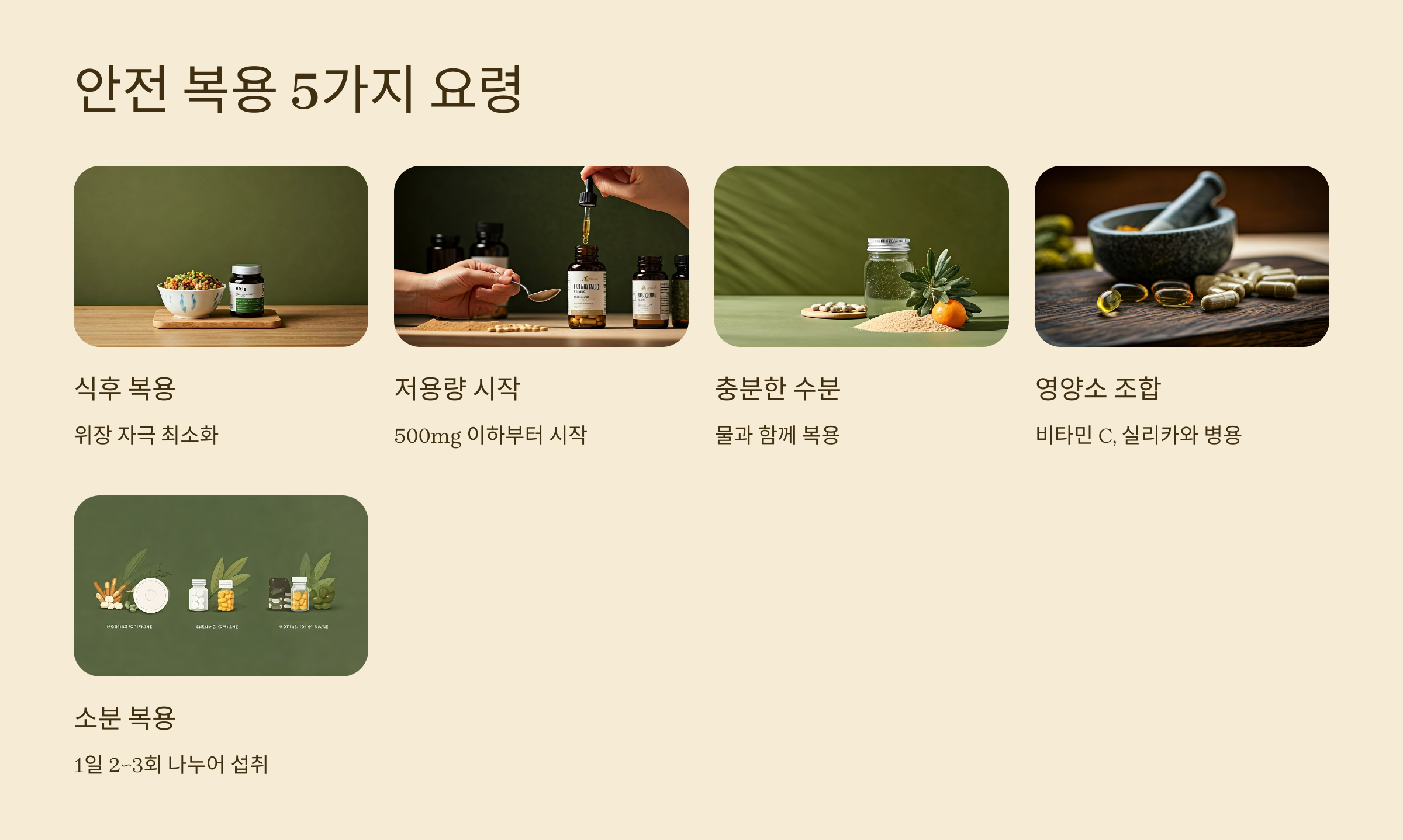 - 1일 2~3회 소분 복용 추천