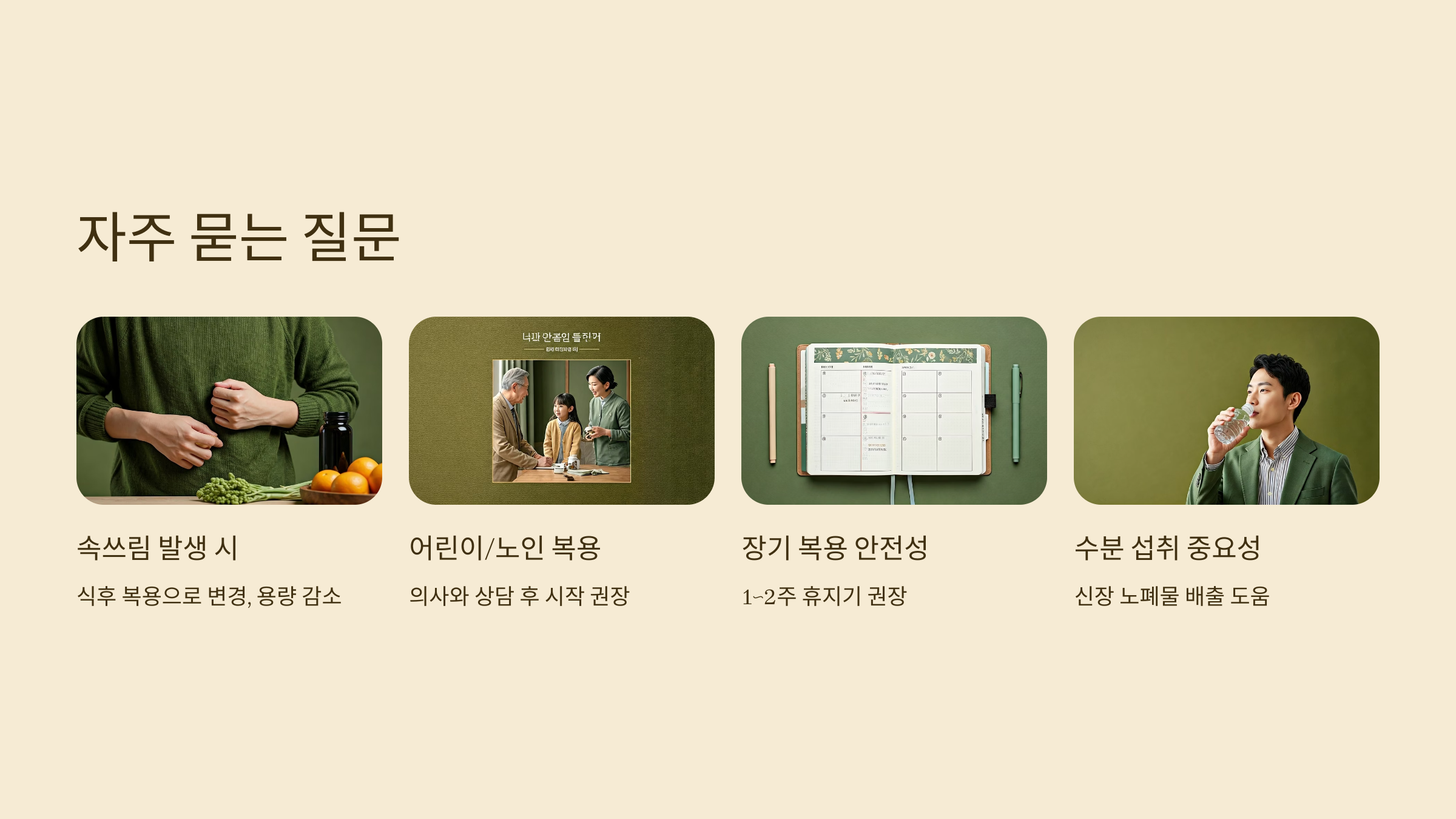 | 공복 복용 | 위장 자극, 속쓰림 유발 |
