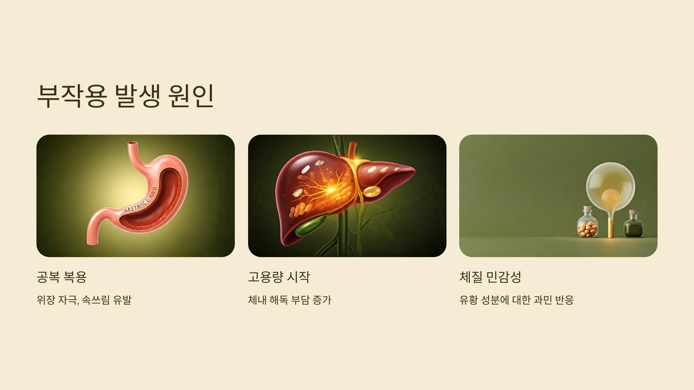 | 고용량 시작 | 체내 해독 부담 증가 |