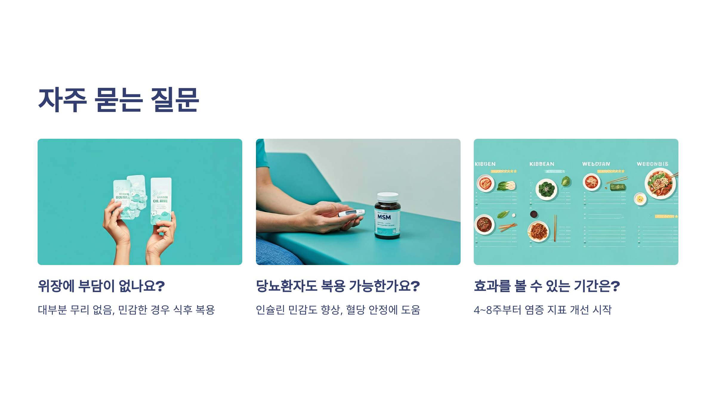 일반적으로 4~8주부터 염증 지표 개선, 소화 및 혈당 안정 효과가 나타나기 시작합니다.