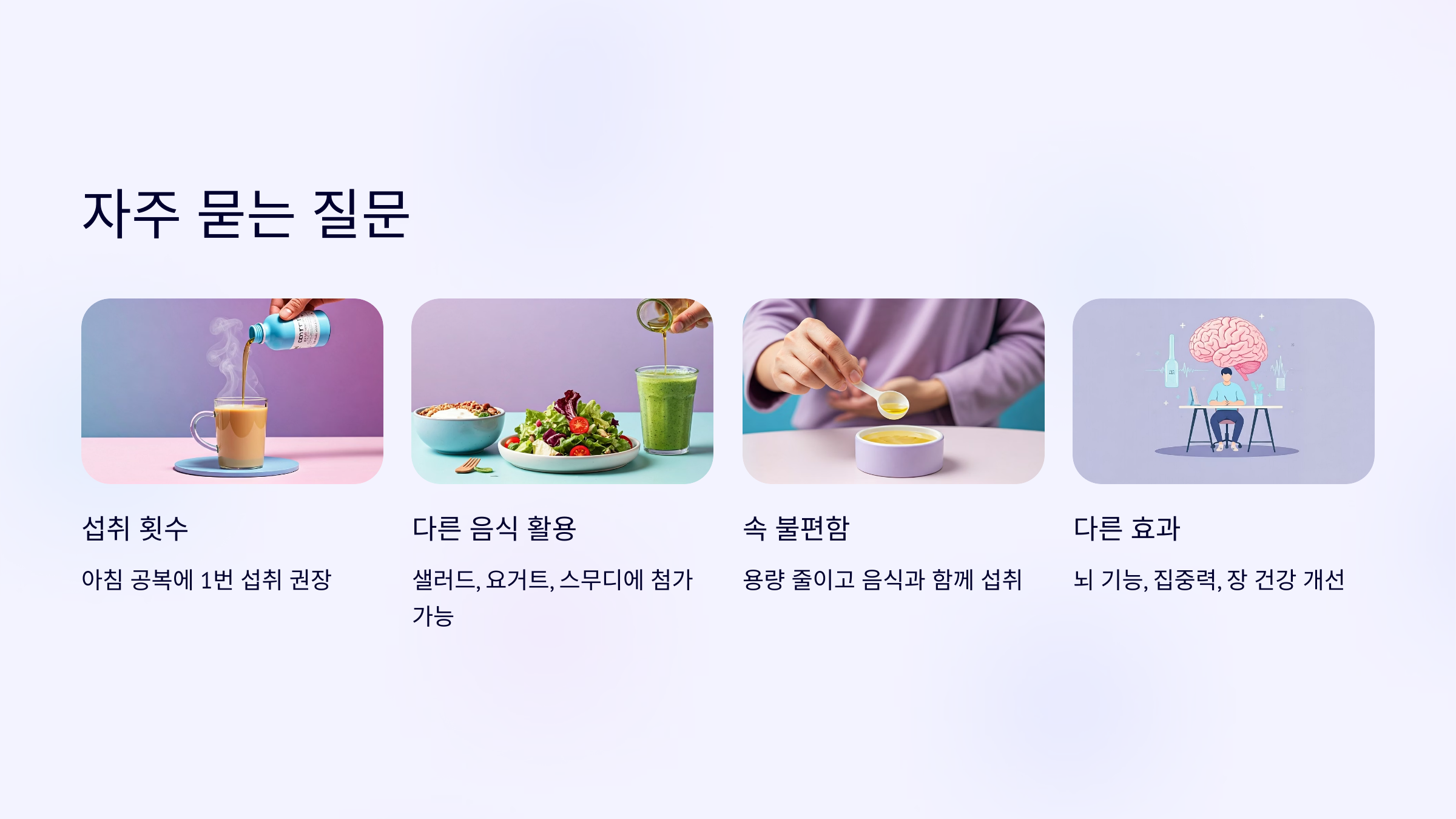 | 처음부터 1스푼 이상 섭취 | 0.5스푼부터 시작해 위장 적응 유도 |