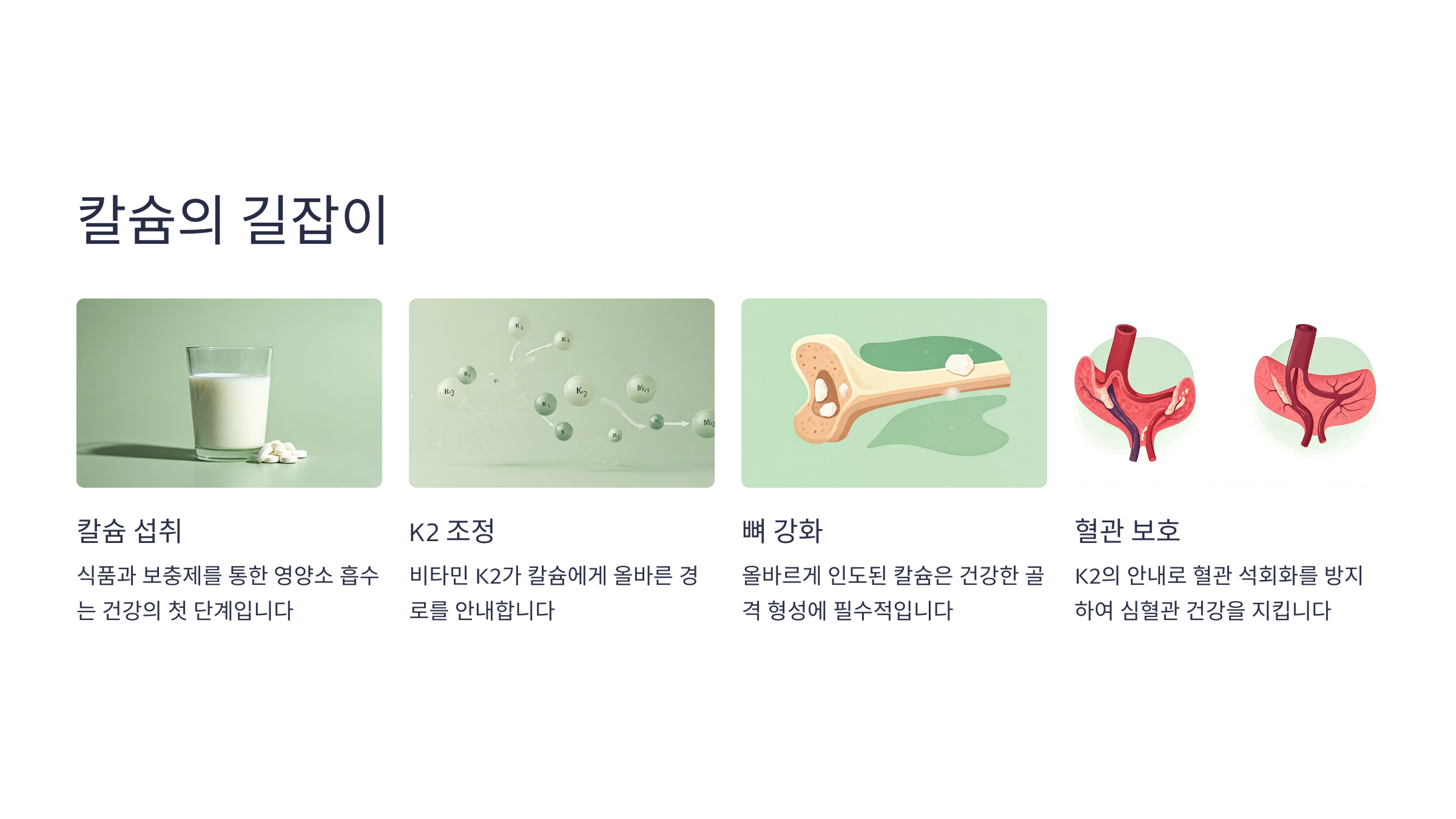 비타민 K2는 칼슘을 뼈로 보내고, 혈관이나 연조직에 침착되지 않도록 막는 조정자 역할을 합니다. 이는 뼈 건강과 혈관 질환 예방을 동시에 도와주는 핵심 메커니즘이에요. K2가 부족하면 아무리 칼슘을 섭취해도 제대로 흡수되지 않고, 오히려 건강을 해칠 수 있다는 사실, 알고 계셨나요?