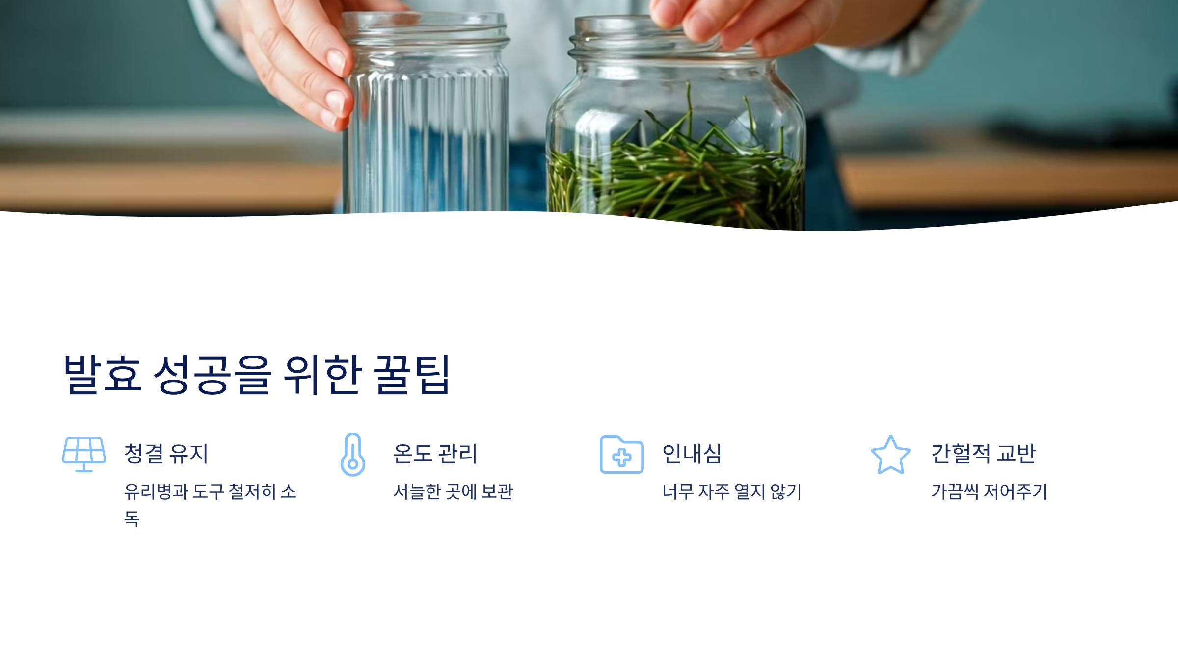 처음 만들 때 가장 신경 써야 할 부분은 청결이에요. 특히 유리병은 반드시 뜨거운 물이나 소주로 소독하고, 물기를 완전히 말린 후 사용해야 합니다. 그리고 발효 중간에 한 번씩 젓는 것도 중요하지만, 매일 너무 자주 열면 오히려 곰팡이가 생길 수 있으니 주의하세요.