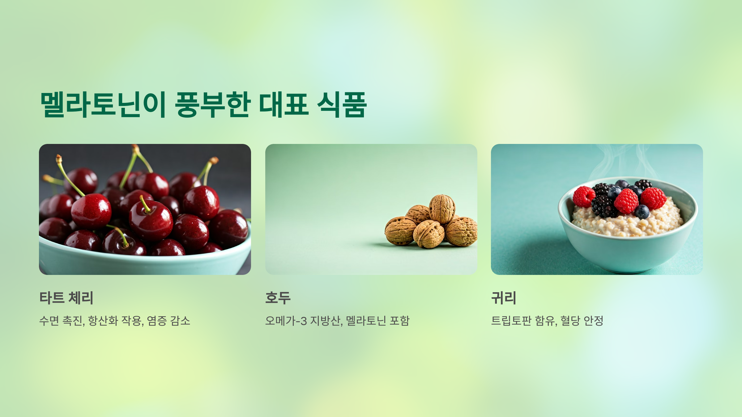멜라토닌, 항산화 식단, 피로회복, 불면증 해소, 수면 호르몬, 타트 체리, 활성산소 제거, 면역 강화, 수면 영양소, 2025 건강 트렌드