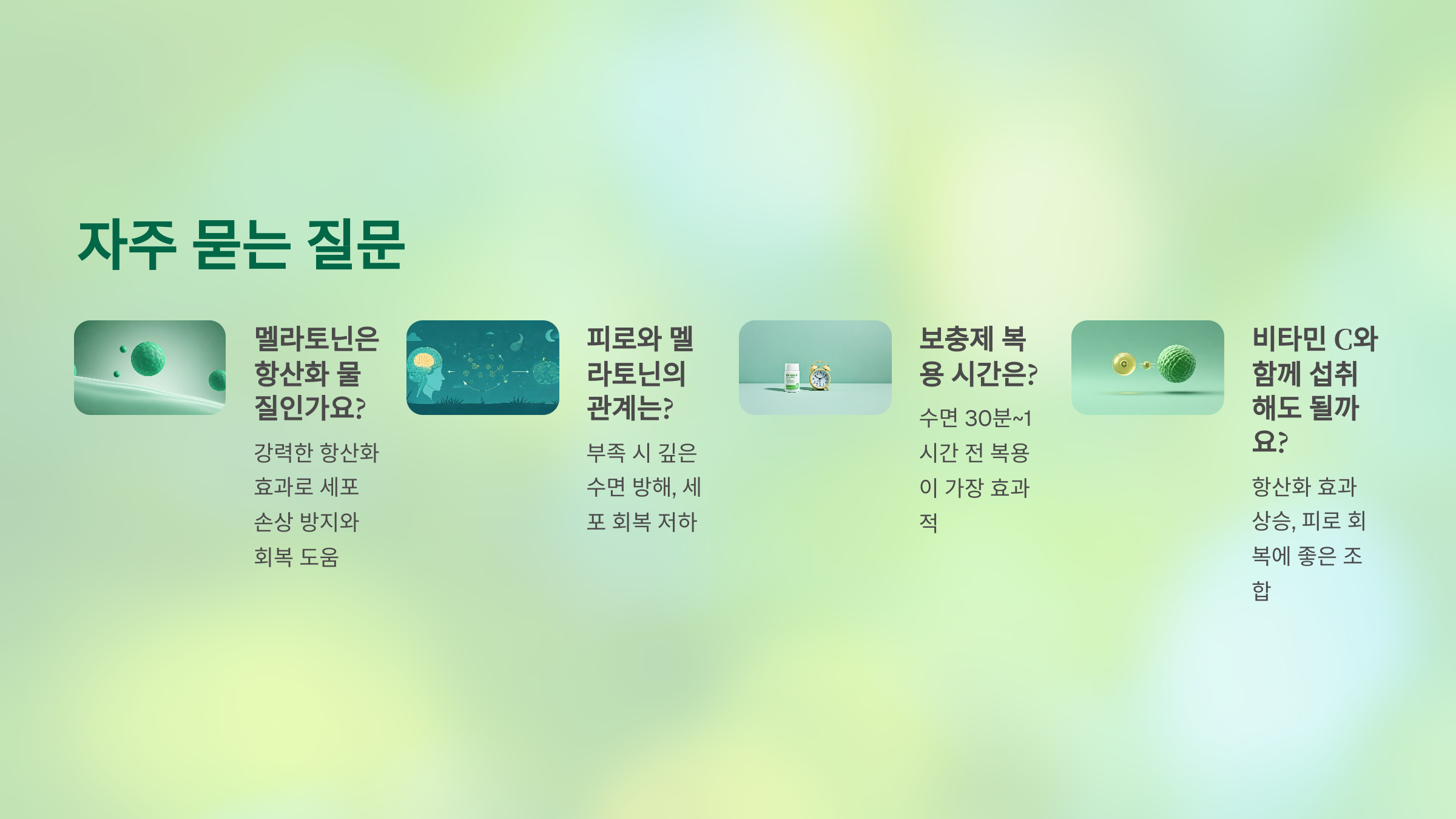 네, 멜라토닌은 강력한 항산화 효과를 가지고 있어 세포 손상 방지와 회복에 도움을 줍니다.