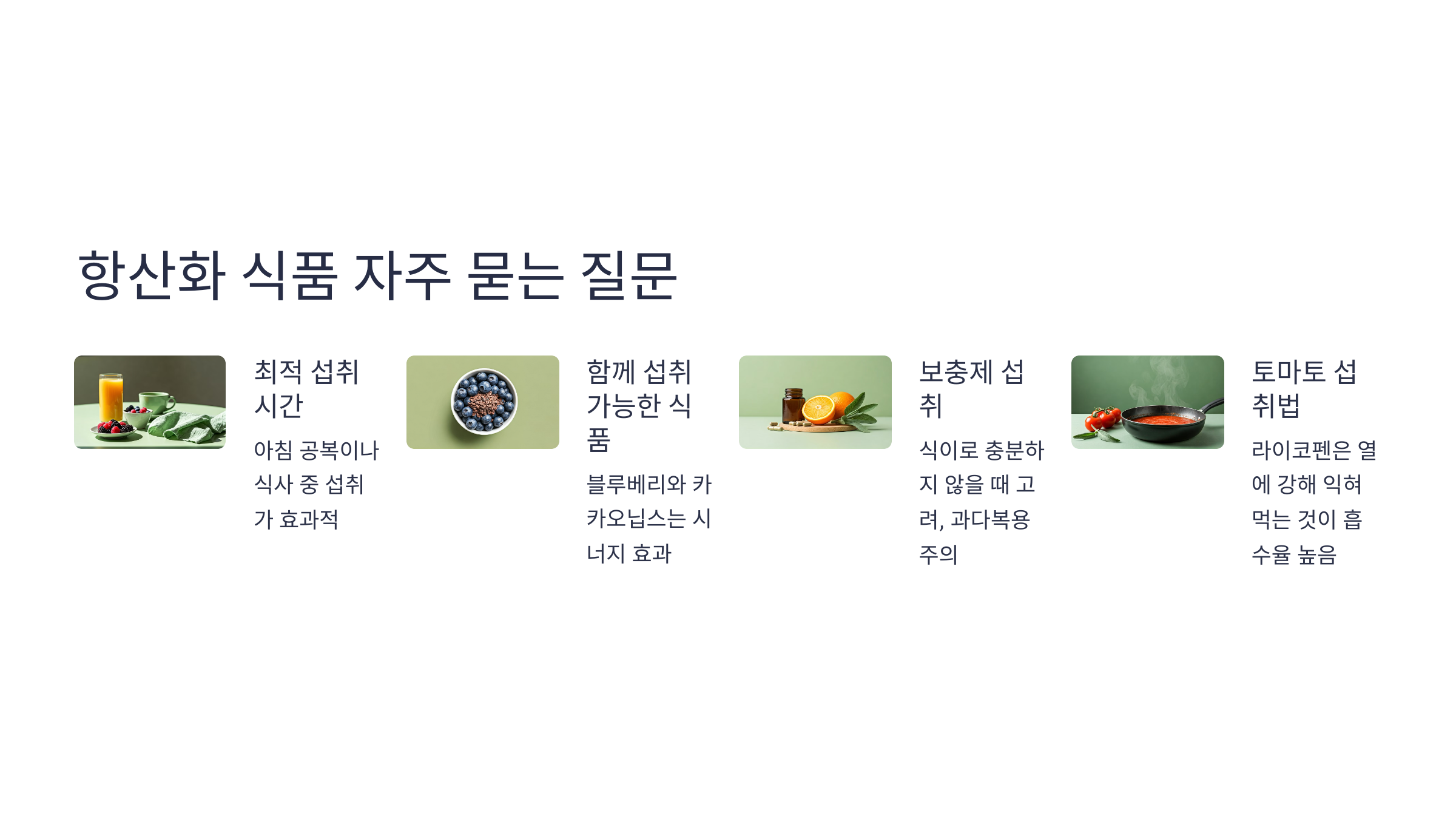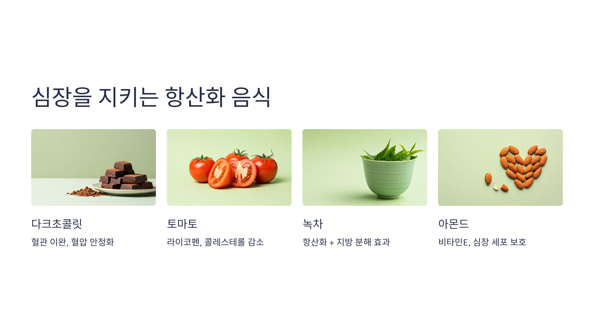 - 매 끼니에 항산화 식품 1가지 이상 포함하기
