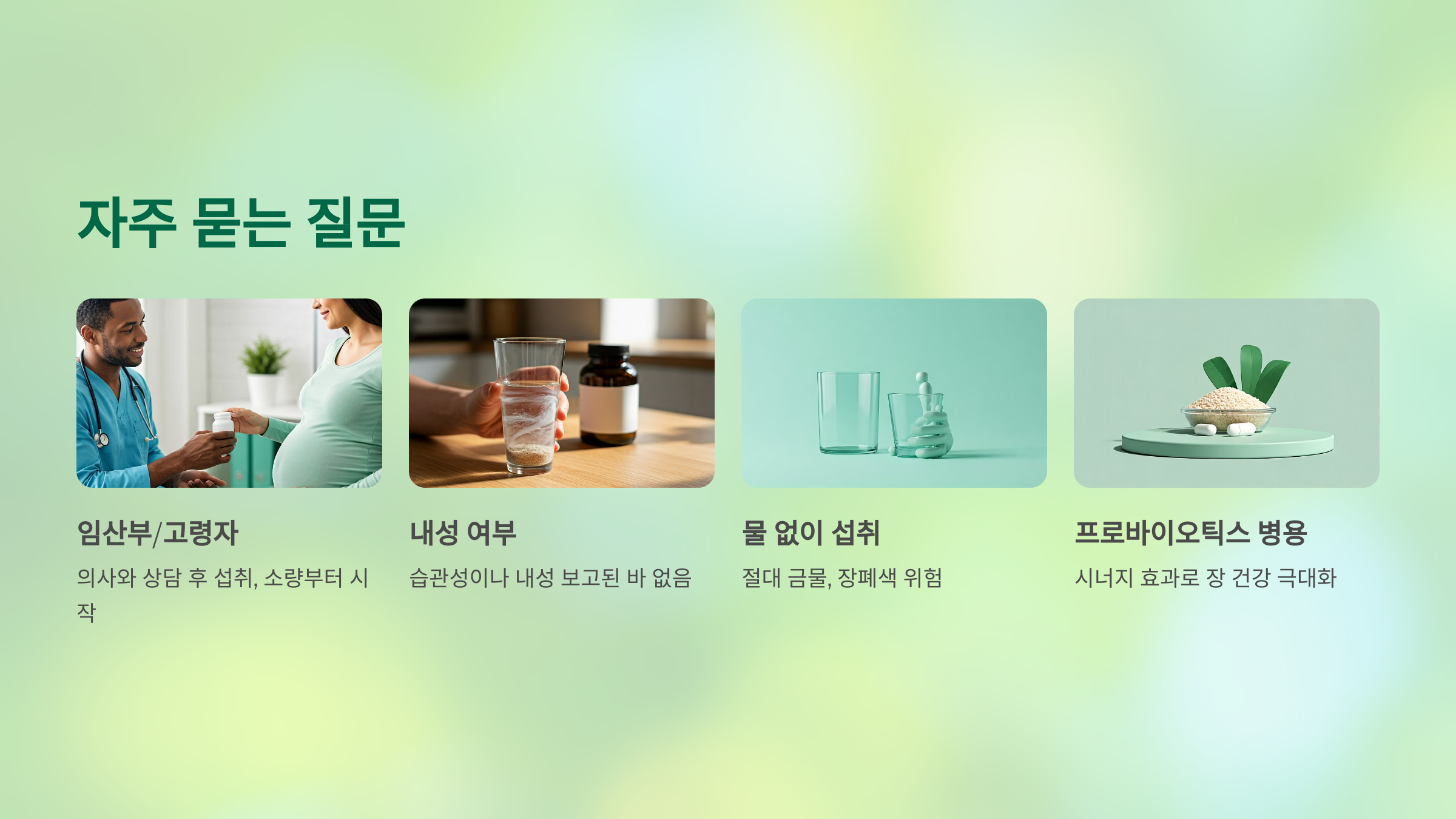 절대 금물입니다. 장에서 팽창하는 특성상 충분한 수분 없이 섭취하면 위장 장애나 장폐색을 유발할 수 있어요.