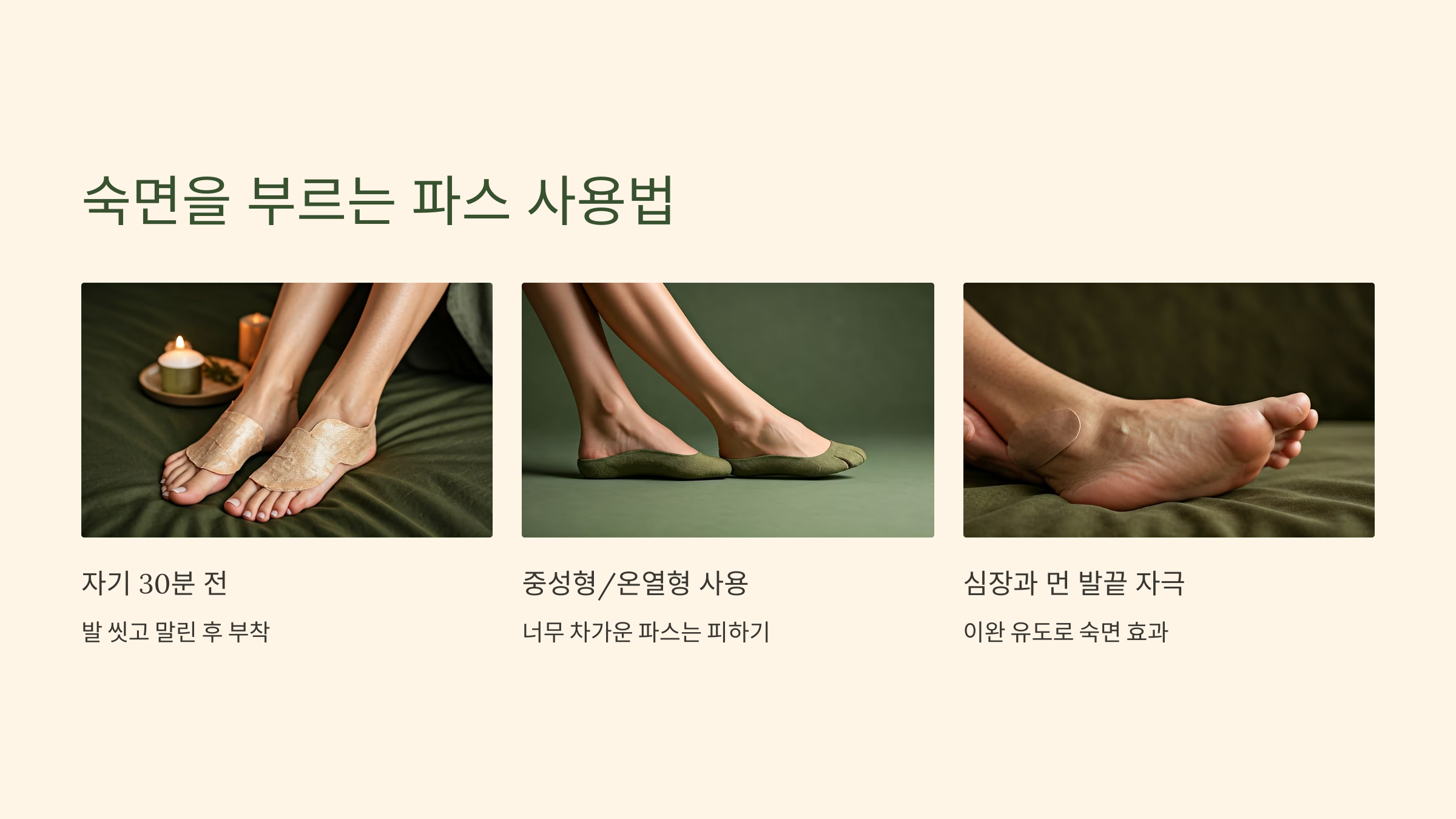 - 자기 30분 전 발을 씻고 말린 후 부착