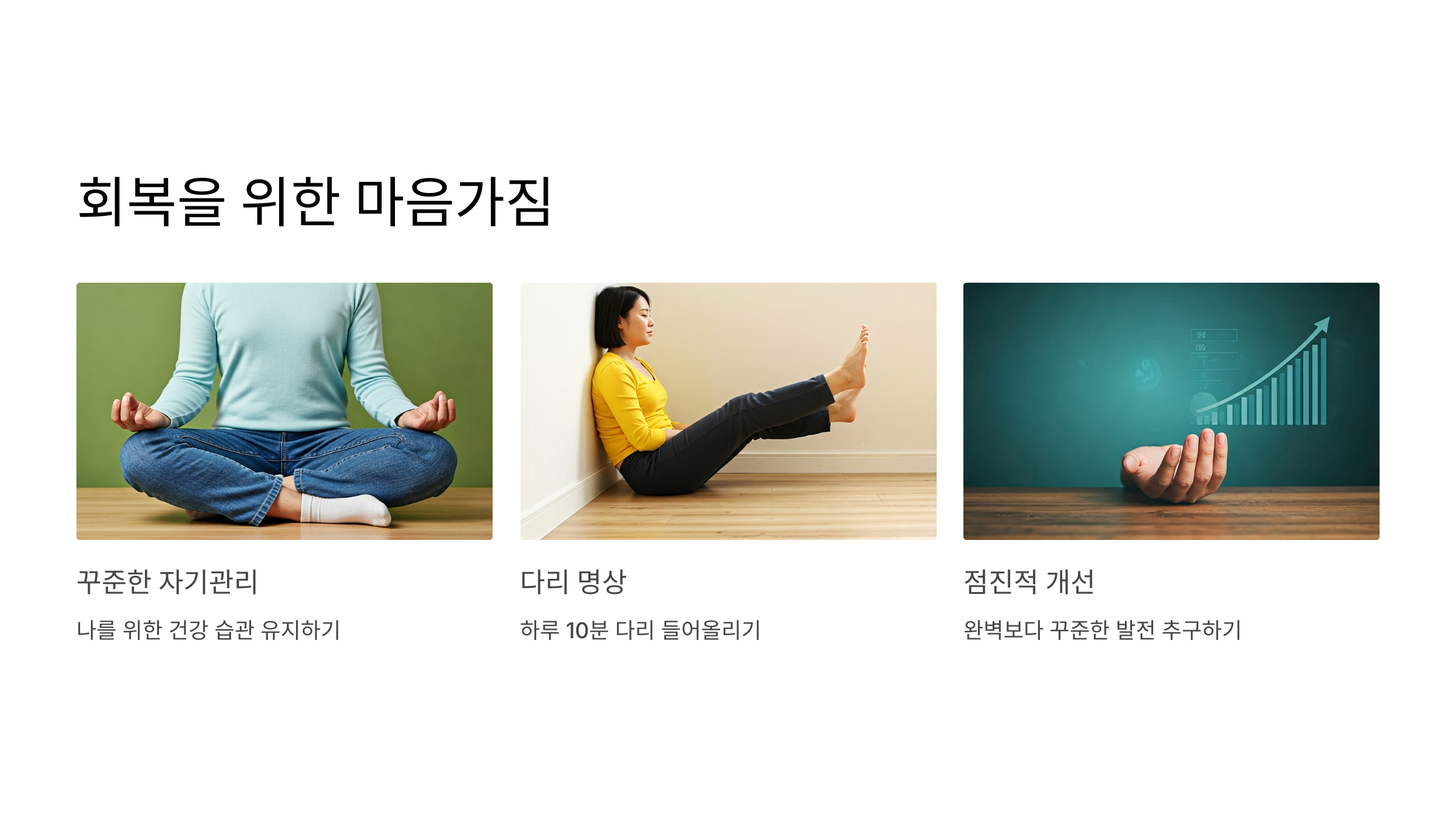치료 이후 회복도 중요하지만, 일상 속 태도와 마음가짐 역시 건강 회복의 중요한 요소예요. 다음과 같은 마음가짐을 가지면 도움이 됩니다.