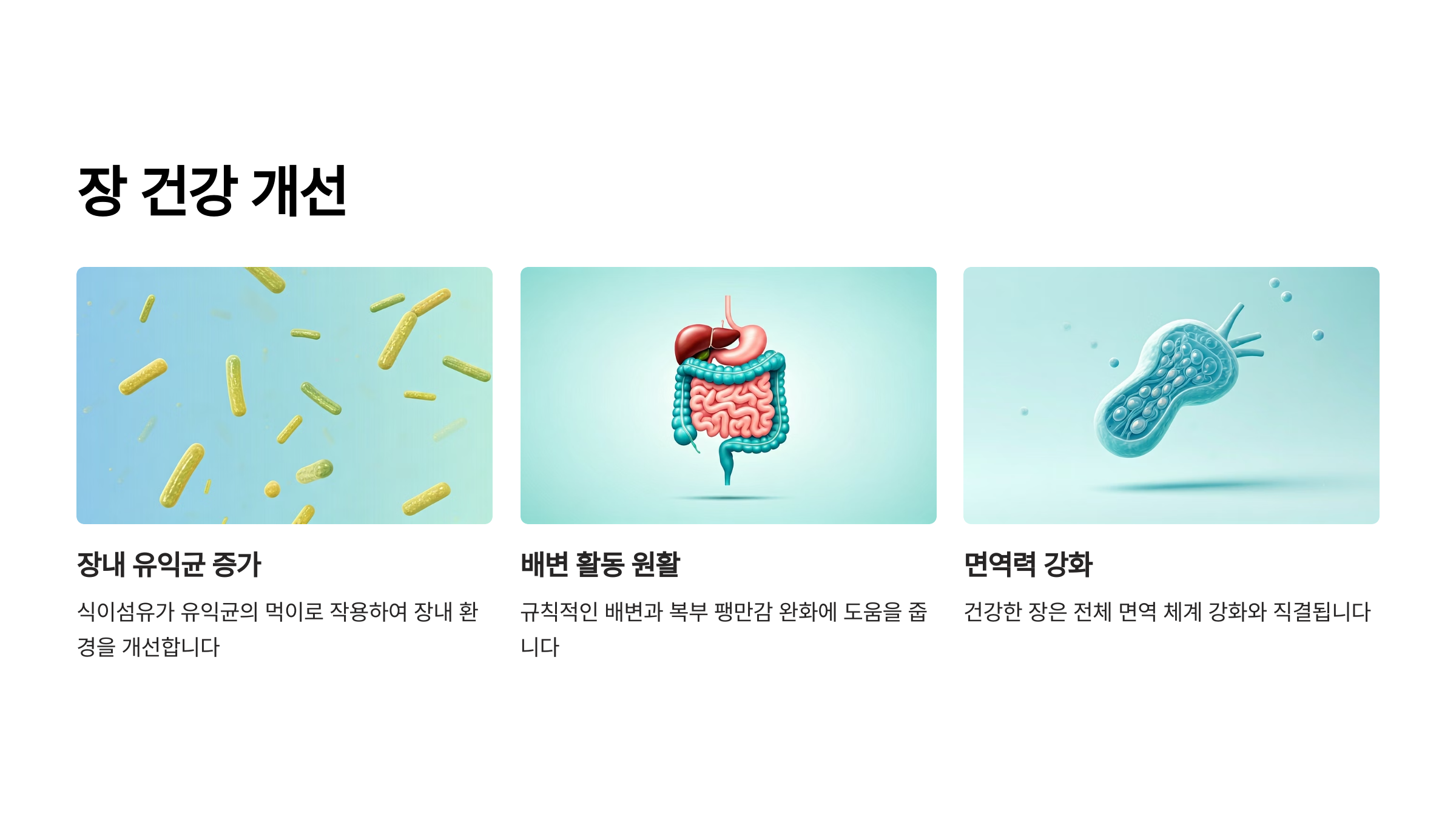 | 식이섬유 | 혈당 상승 속도 조절, 포만감 증가 |