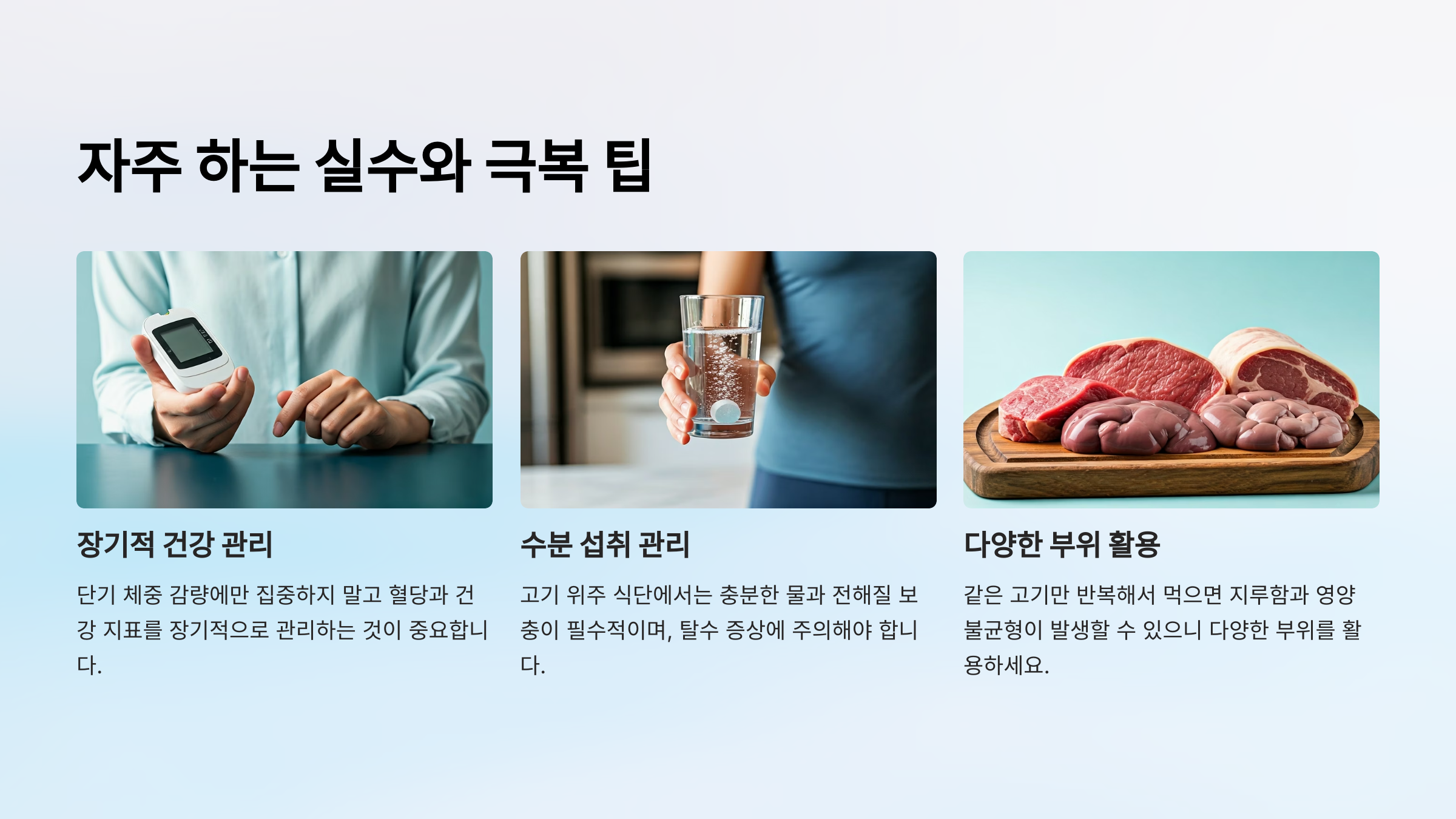 - 지나치게 단조로운 식단: 다양한 부위를 활용해 지루함 방지!