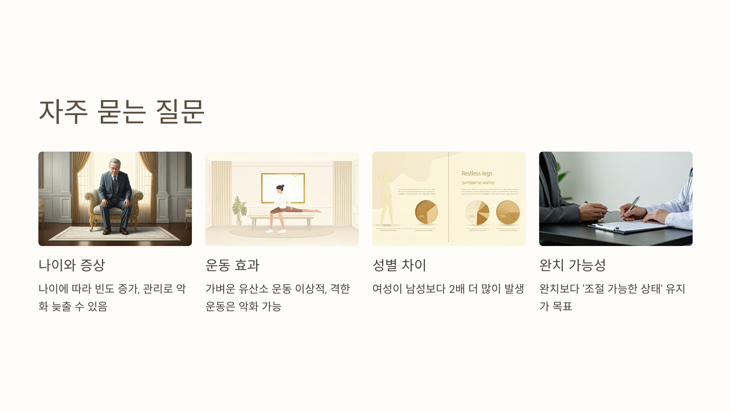 하지불안증후군은 겉으로 드러나지 않지만 삶의 리듬을 크게 무너뜨릴 수 있는 질환입니다. 저 역시 수면 부족으로 인해 일상에 큰 불편을 겪었고, '이게 병일 수 있다'는 사실을 알고 나서야 대처할 수 있었습니다. 오늘 이 가이드를 통해 하지불안증후군을 명확히 이해하고, 당신의 수면과 건강을 회복하는 첫걸음이 되셨길 바랍니다. 치료도 중요하지만, 나 자신을 돌보는 생활습관부터 바꿔보는 것, 그게 진짜 회복의 시작입니다. 더 궁금한 점은 언제든 댓글로 남겨주세요. 함께 이겨낼 수 있습니다.