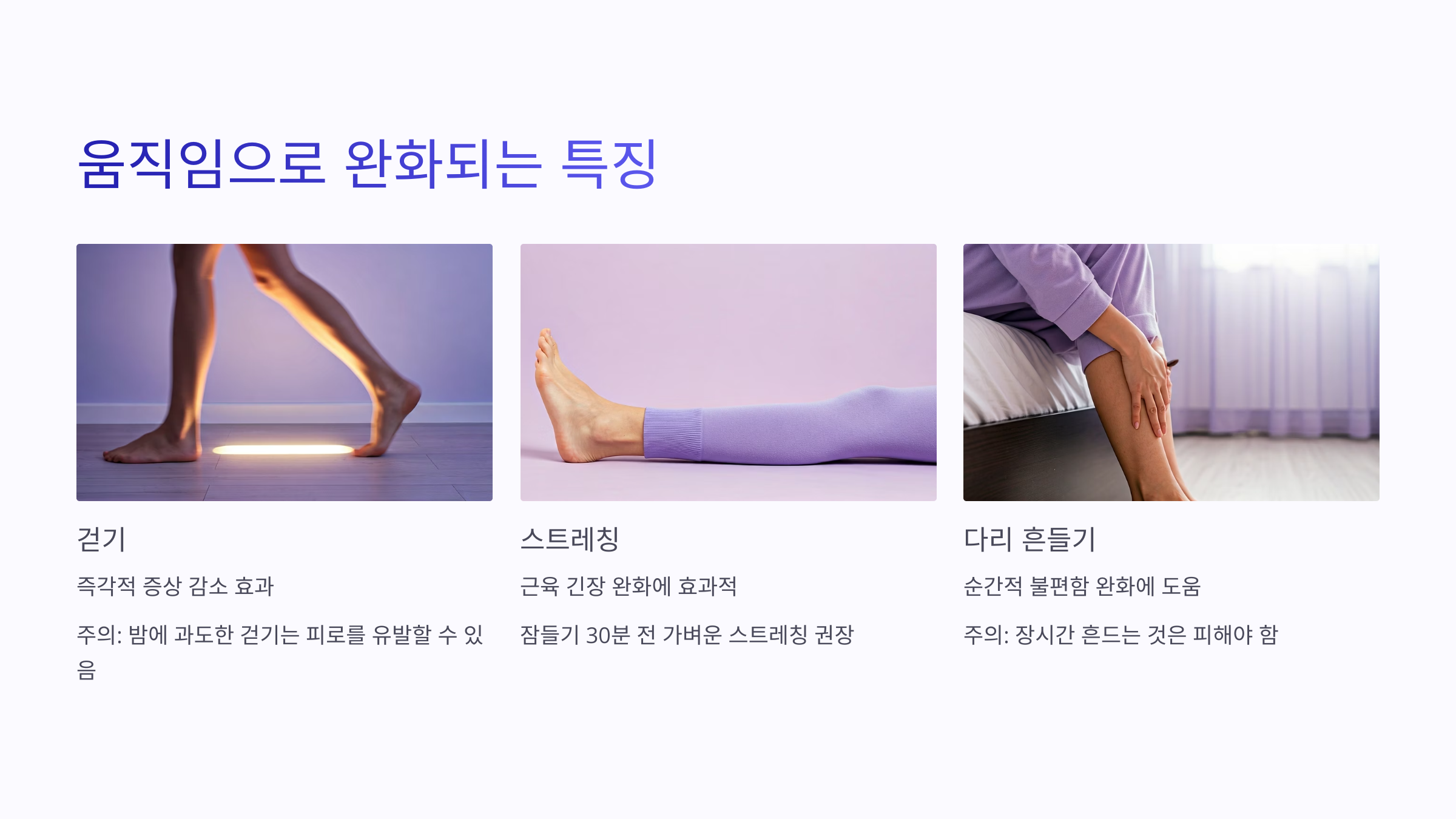 생활 속에서 하지불안증후군을 완화할 수 있는 실천 팁을 소개합니다. 꾸준한 실천이 증상 관리에 큰 도움이 됩니다.